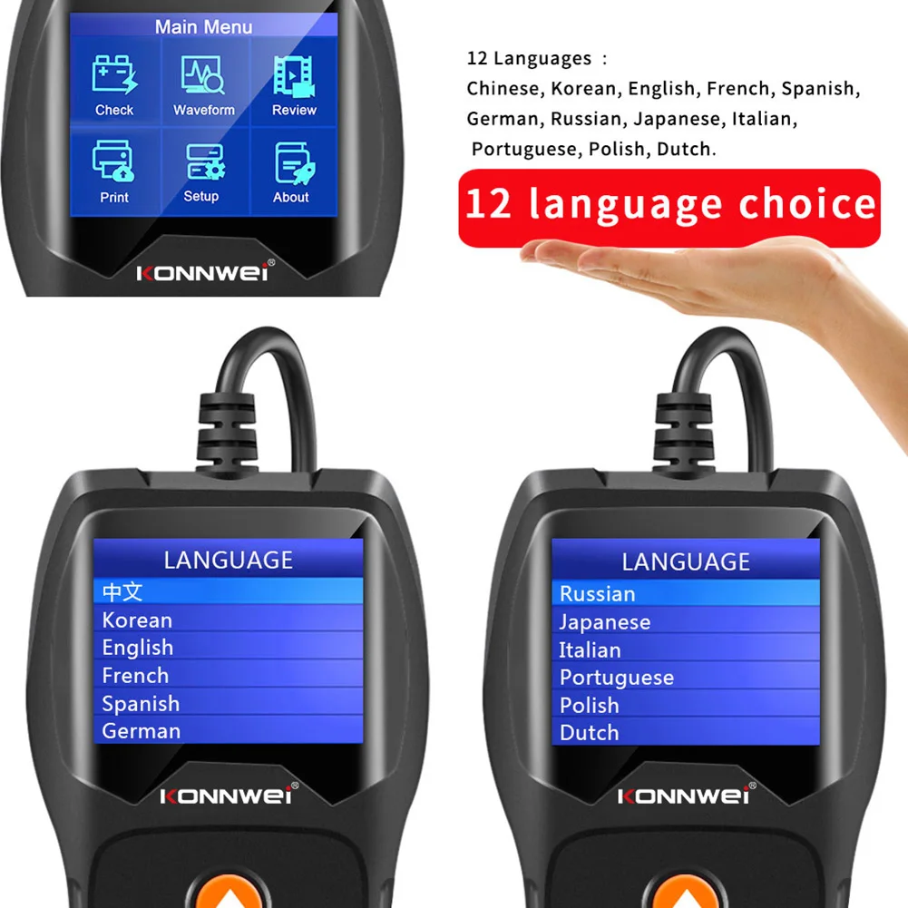 * 13. Поддерживаются основные стандарты аккумуляторов CA,CCA,BCL,MCA,JIS,SAE,EN,GB, DIN и IEC.