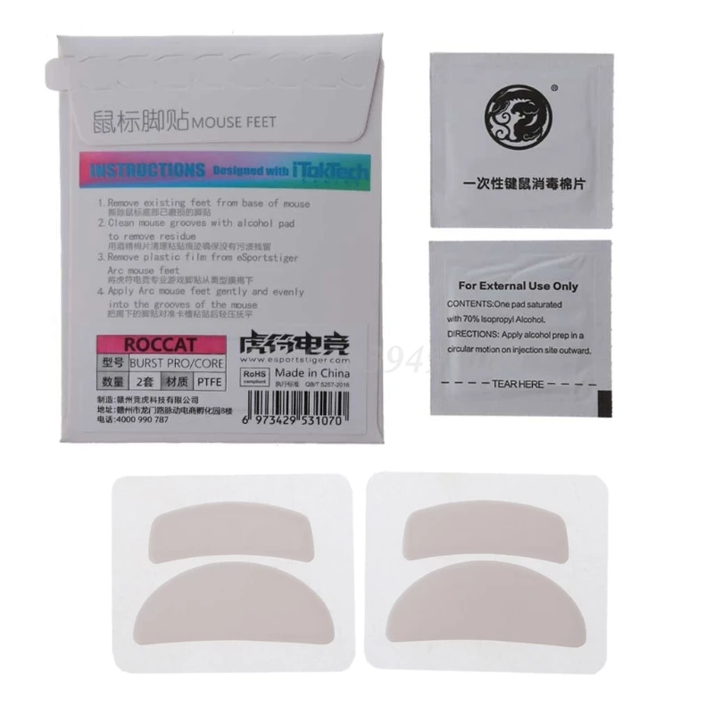 Ножки для игровой мыши 2 компл.упак. Tiger, коньки для мыши Roccat BURST PRO Mouse, белая мышь скользит по краю