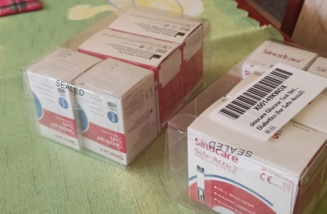 Флуоресцентный [100 лент]: 100 тест-полосок в бутылках 100 x ланцетов Флуоресцентный [50 лент]: 50 тест-полосок в бутылках 50 x ланцетов