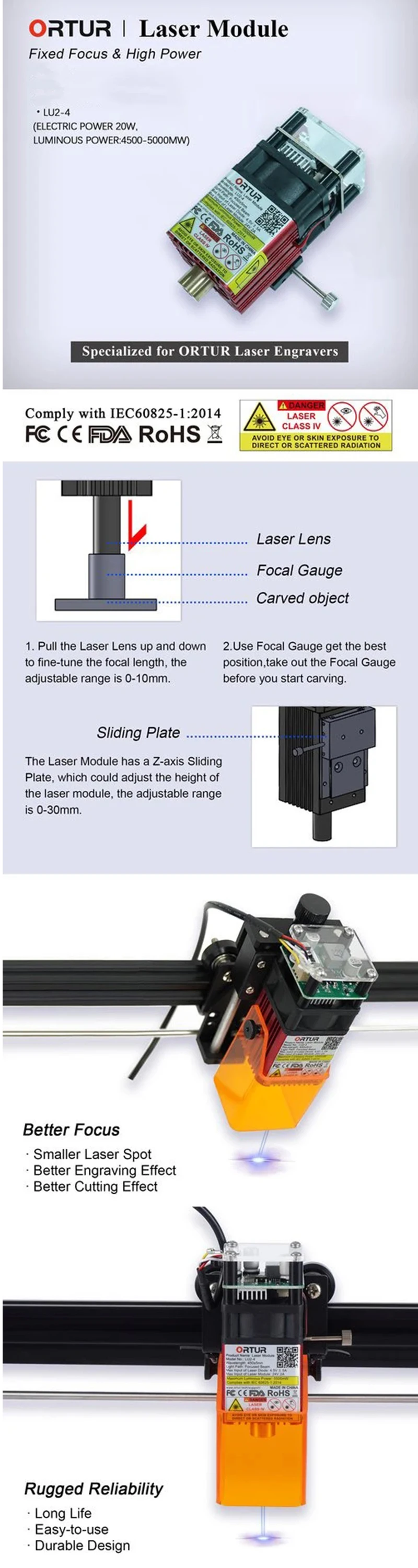 Лазерная гравировочная головка LU1-4 20 Вт, лазерная гравировочная головка с фиксированным фокусом, запасные части для деревообработки, инструменты сделай сам для лазерного гравера Ortur