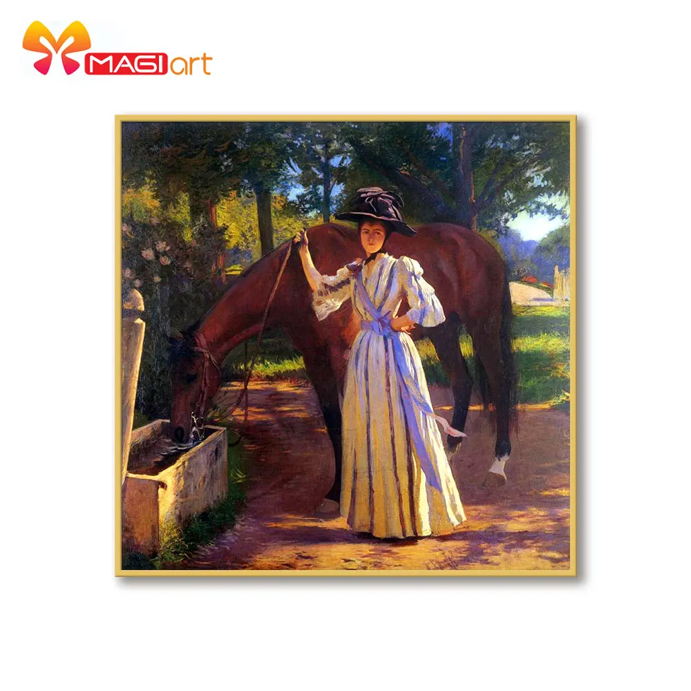 вышивка крестом наборы рукоделие, наборы для вышивки 11CT водорастворимые узоры на холсте 14CT Полный Портрет лошади и женщины-NCMP093