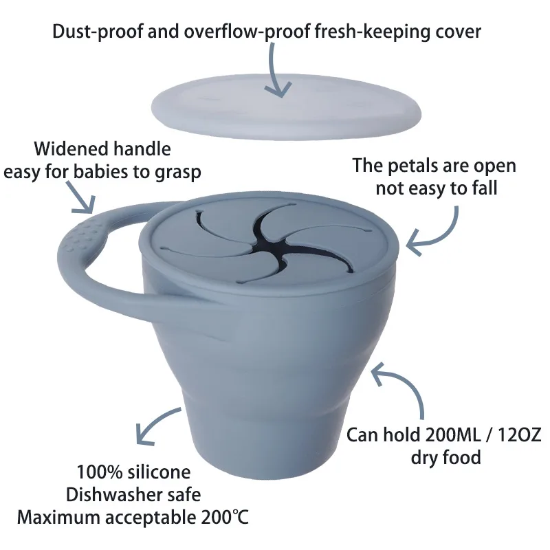 100% пищевой безопасный одобренный силиконовый контейнер для мелких предметов модная чашка для закусок портативная пищевая чашка с крышкой Детские аксессуары
