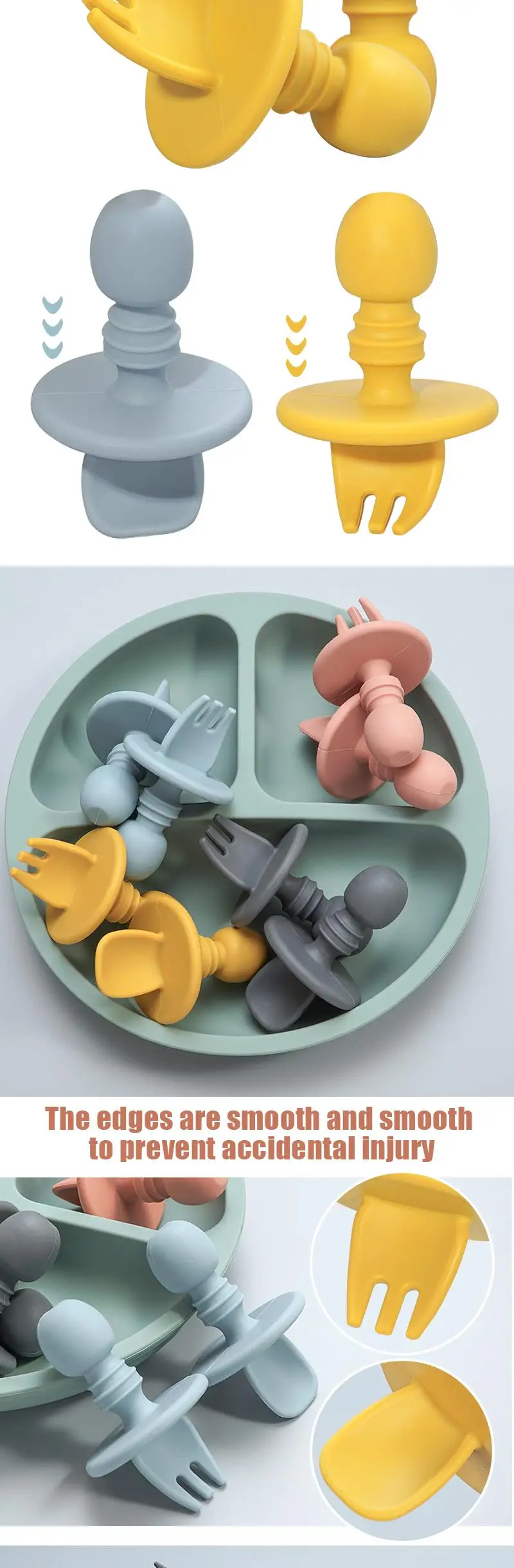 2 шт.лот, набор силиконовых ложек и вилок для кормления детей, пище...