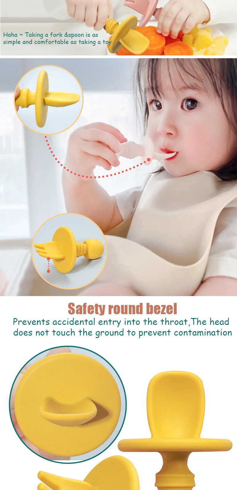 Набор детских тренировочных ложек и вилок, из мягкого силикона, не содержит бисфенола А, вспомогательная посуда для кормления, аксессуары для новорожденных