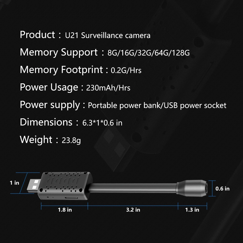 Особенности:1.U21 wifi 4K камера, поддержка универсального USB интерфейса, подключение к источнику питания.2. Камера меньше, легко носить с собой, вооружена. Поддерживает различные зарядные устройства для мобильных устройств и карманных розеток для долгосрочного мониторинга.3. Встроенный умный шланг, угол объектива можно легко отрегулировать.Настройте область и время, скриншоты оповещений в реальном времени могут быть отправлены на ваш телефон через приложение.4. Поддержка удаленного воспроизведения, вы можете удаленно просматривать видео на карте MicroSD в любое время.Облачное хранилище, скриншоты напоминания будут автоматически загружены в облако Alibaba, более безопасно! (необходимо приобрести отдельно.)Обратите внимание: нет встроенного аккумулятора, просто подключите источник питания для достижения долгих часов работы.Описание:Цвет: черныйМатериал: ПВХОбъектив: 9712Пиксель: 1200 мега CMOSРазрешение: 4K/1080PЧастота кадров: 25 кадровНазвание приложения: HDminicamОбъектив: 14 ммШирокий угол: 170 °/120 °Режим питания: USBПамять: 4K максимальная поддержка карты TF 128G (не входит в комплект)Максимальная поддержка 1080P для tf-карты 64G (не входит в комплект)Минимальное освещение: 1 люксСжатый Формат: H.264Диапазон записи: 5 м2Инфракрасное Ночное издание: 5-8 квадратных метровТемпература хранения: -20-80 градусов ЦельсияРабочая температура: -10-60 градусов ЦельсияРабочая влажность: 15-85% относительной влажностиПрограммное обеспечение плеера: VLCPlayer / SMPlayerОперационная система компьютера: Windows / Mac OS X.Мобильная операционная система: Android / iOSВеб-браузер: IE7 и выше, chrome, firefox safari и т. Д.Для удаленного мониторинга не требуется карта TF. Однако, если вы хотите сохранить видео наблюдения и воспроизвести его, вы должны вставить tf-карту.Максимальная TF карта поддерживает до 64 г, 32 г около 8 дней; 64 г около 16 днейРазмер упаковки:9,5*6,5*5,5 смУпаковочный лист:1 * Камера1 * руководство на английском языке