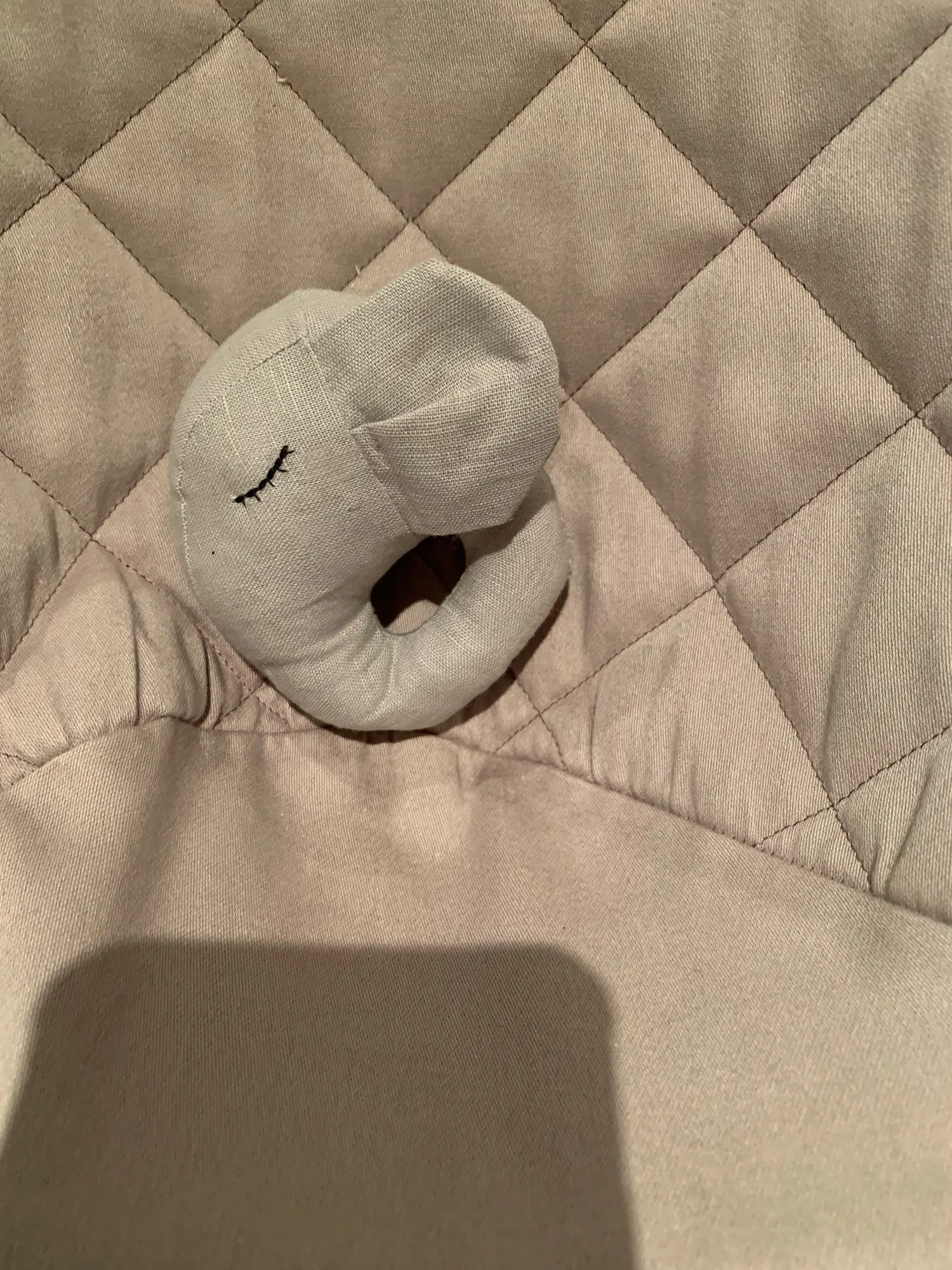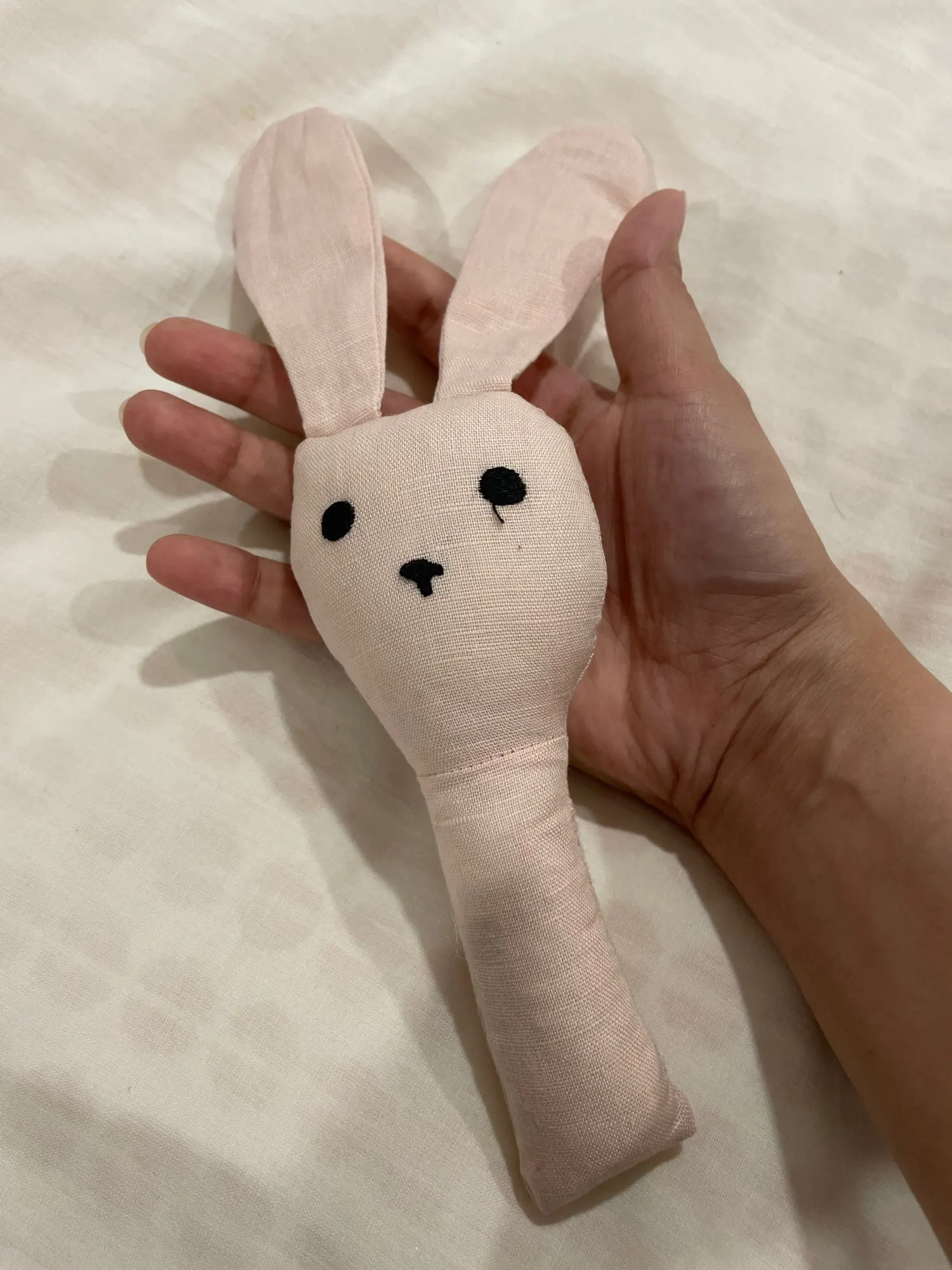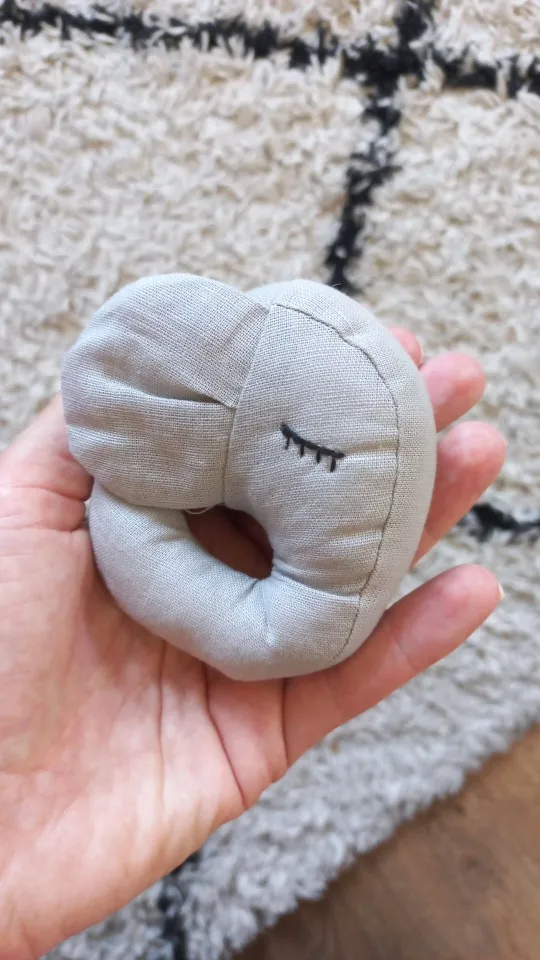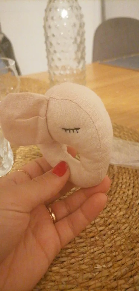 Меньше чем ожидала , немного торчат нитки . Вцелом милая игрушка