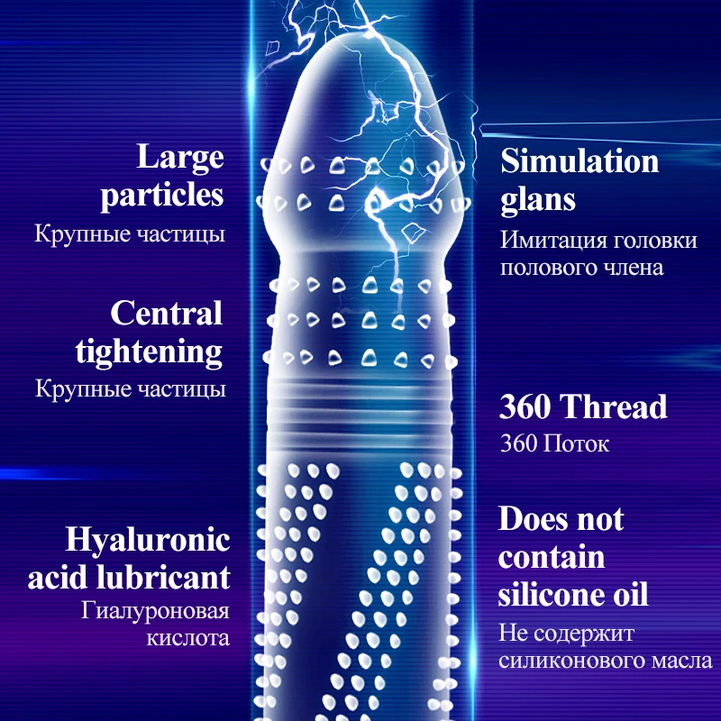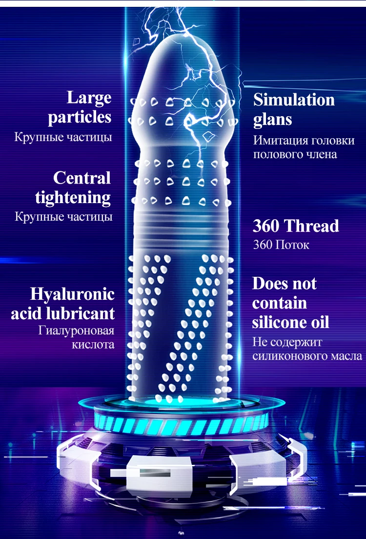 Ультратонкий, особо мягкий, крупные частицы, презервативы с нитями который плотно прилегает к телу и лубрикант с гиалуроновой кислотой;