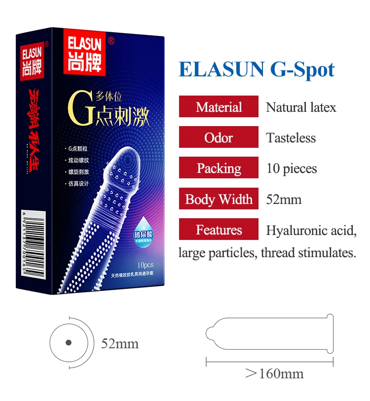 Презерватив ELASUN лубрикант с гиалуроновой кислотой для мужчин, презервативы из натурального латекса для точки G