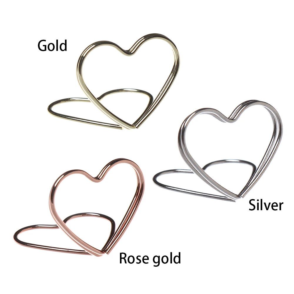Материал: металл Цвет: золото/розовое золото/серебро Стиль: кольцо в форме сердца Нанесите на: домашнее украшение, настольное украшение, держатель для фотографий, фоторамка, держатель для карт, подарок и так далее