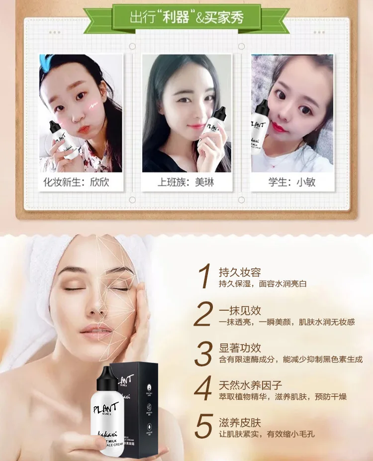 Крем-основа для макияжа с козьим молоком, водостойкая, TSLM1