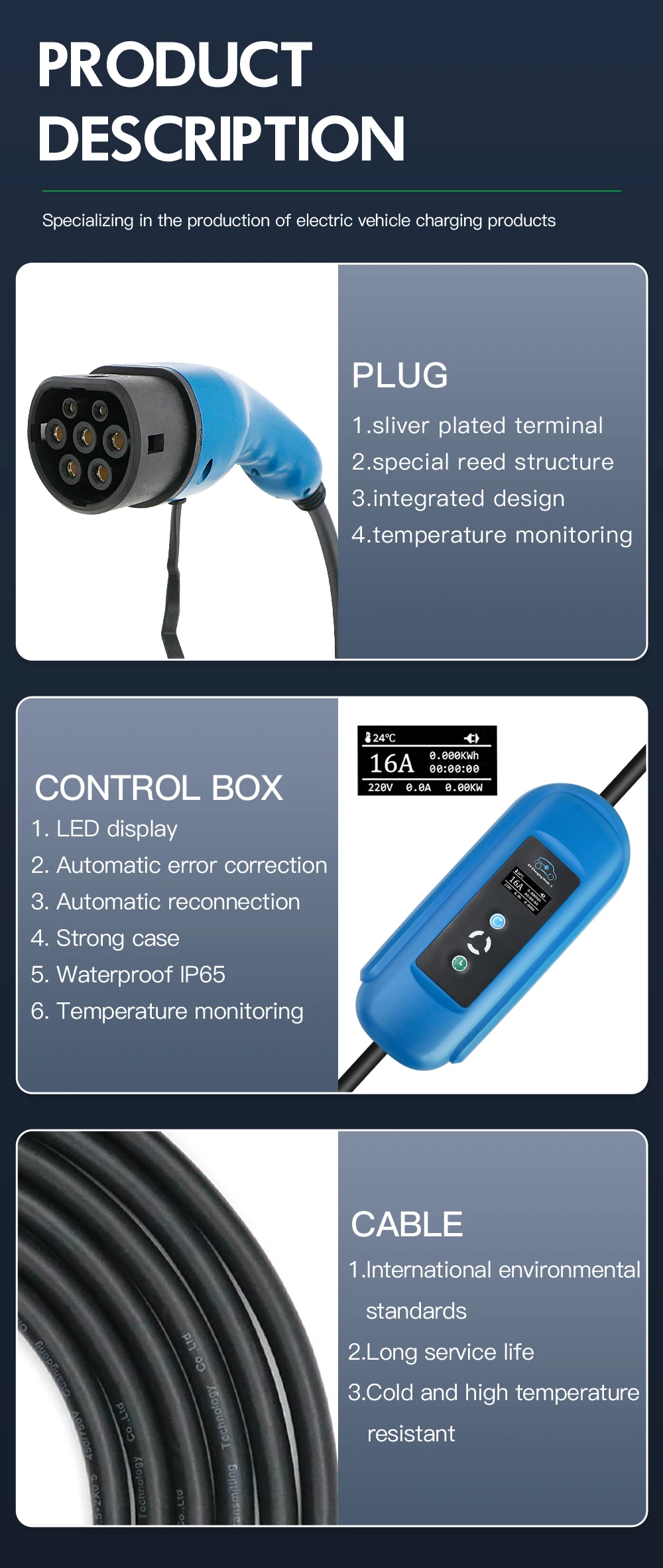 Зарядное устройство для электромобилей, тип 2, 3 фазы, 11 кВт, 380 В, уровень управления электрическим автомобилем для дома, 2 типа, IEC62196 8A 10A 12A 16A EVSE