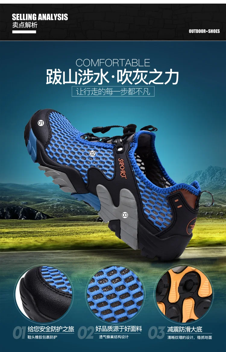 Кроссовки мужские на резиновой платформе, спортивная летняя обувь для туризма и альпинизма, треккинговые, водные, Нескользящие, размеры 38-46