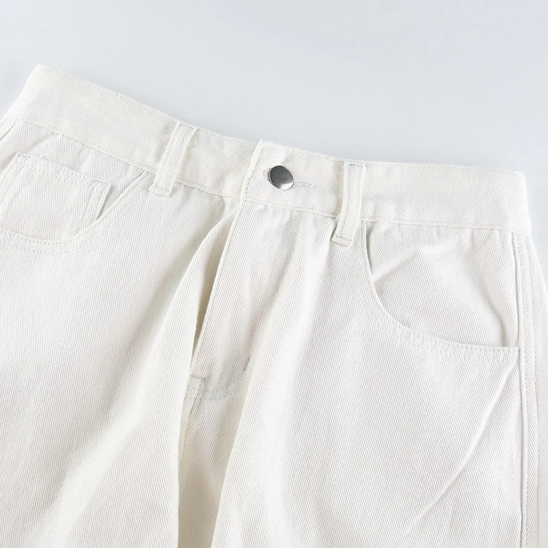 Белые уличные брюки с высокой талией, джинсы-бойфренды с прямыми шт...