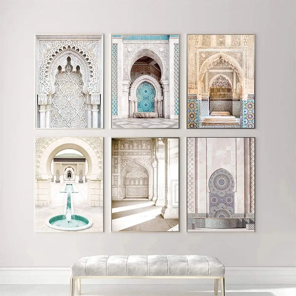 Марокканская архитектура дверей архитектура Искусство Холст Живопись исламский арабский принт мечеть настенный плакат современные картины мусульманский Декор