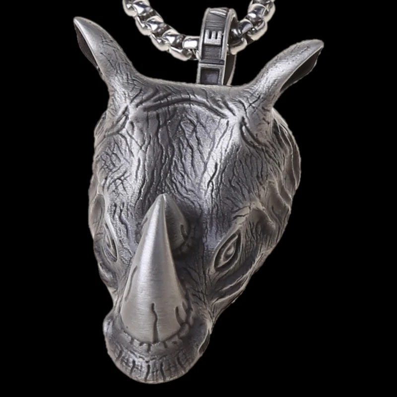 Винтажная подвеска в виде носорога для мужчин, байкеров, панк-рок, животное носорог голов, с 24-дюймовой стальной цепочкой