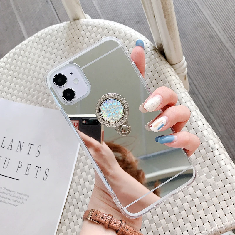 Роскошный мягкий зеркальный чехол для Huawei Honor 20 Pro 6X 7X 8X 9X 10I View 10 20 30 9A 9C 9S 8A 7A Mate 20, чехол-подставка с бриллиантовым кольцом