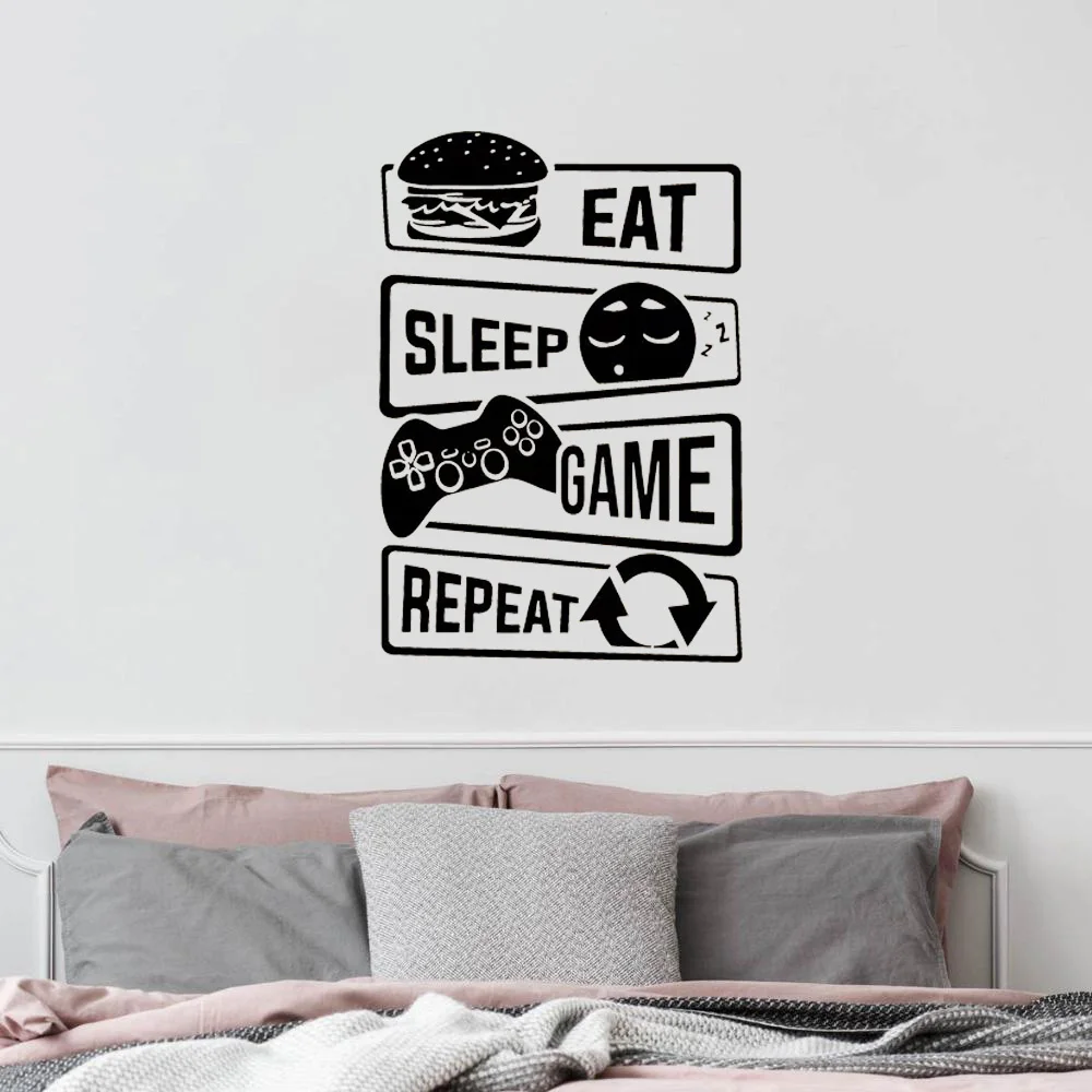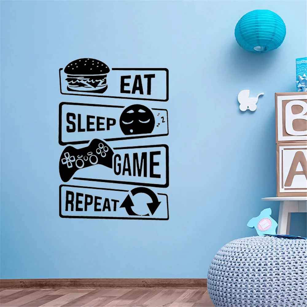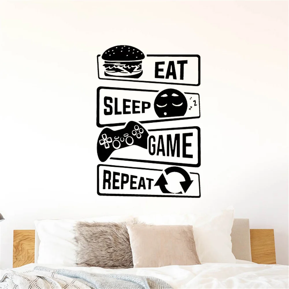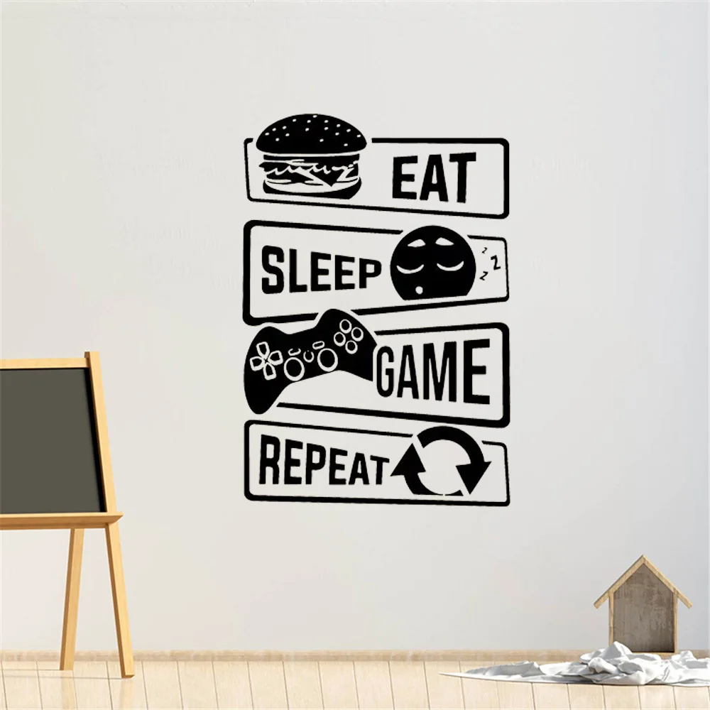 Eat Sleep игры повторяют игровая зона стены Стикеры виниловый художественный Декор для дома в детской комнате Спальня стена игровой комнаты Переводные расписные обои icon star icon star icon star icon star icon star