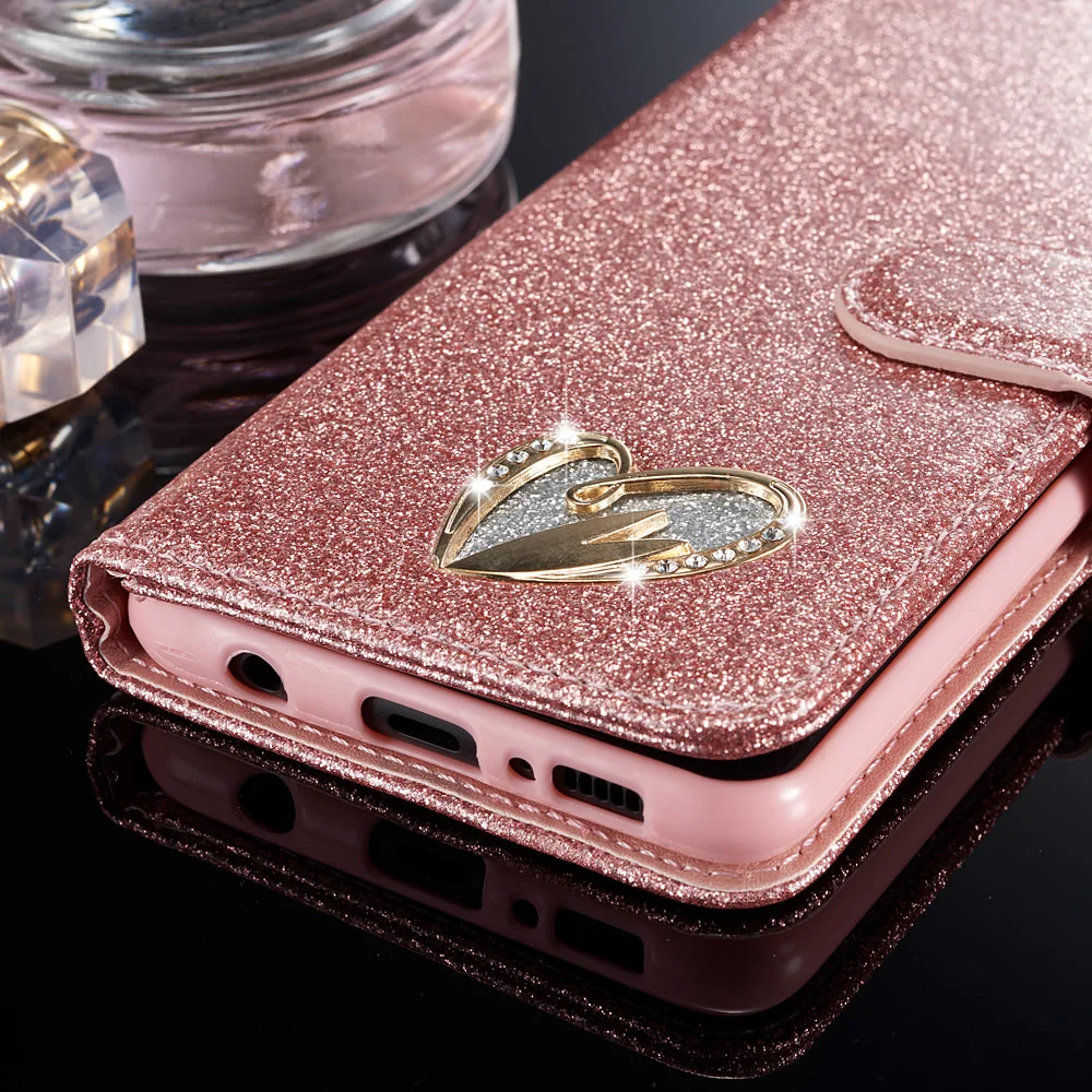 Блестящий чехол для Huawei P30 P20 Lite кожаный чехол-книжка Love J...