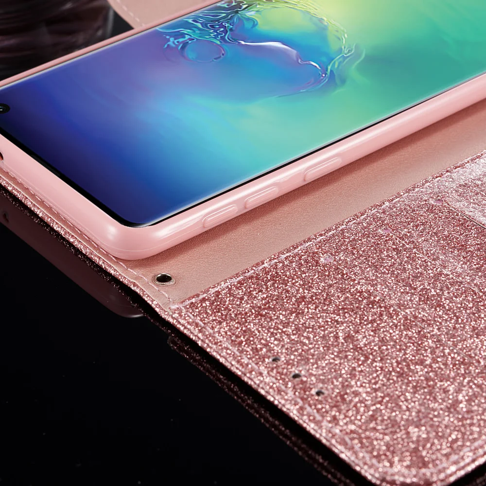 Кожаный чехол-книжка с блестками для Samsung Galaxy S21 Ultra S20 FE S10 S10E S8 S9 S7 Edge Note 10 20 Plus 5G S 9 8