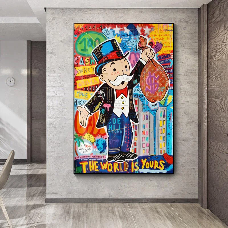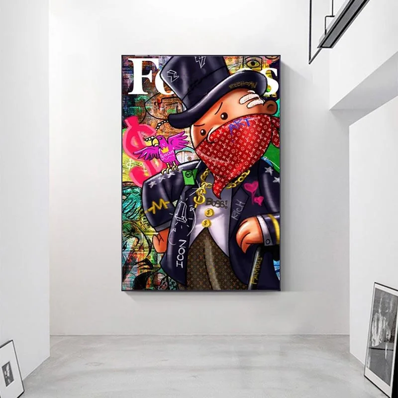 Богатый панда джентльмен сохраняет бесшумный Холст Картина Красочный Регал граффити плакат Современный домашний декор спальня гостиная