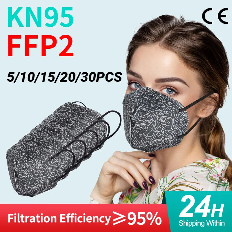 5101520 Вт, 30 Вт, взрослое KN95 маска для лица Мода цветок печатных уход за кожей лица маска фильтр респиратора с дышащие маски Mascarilla FFP2