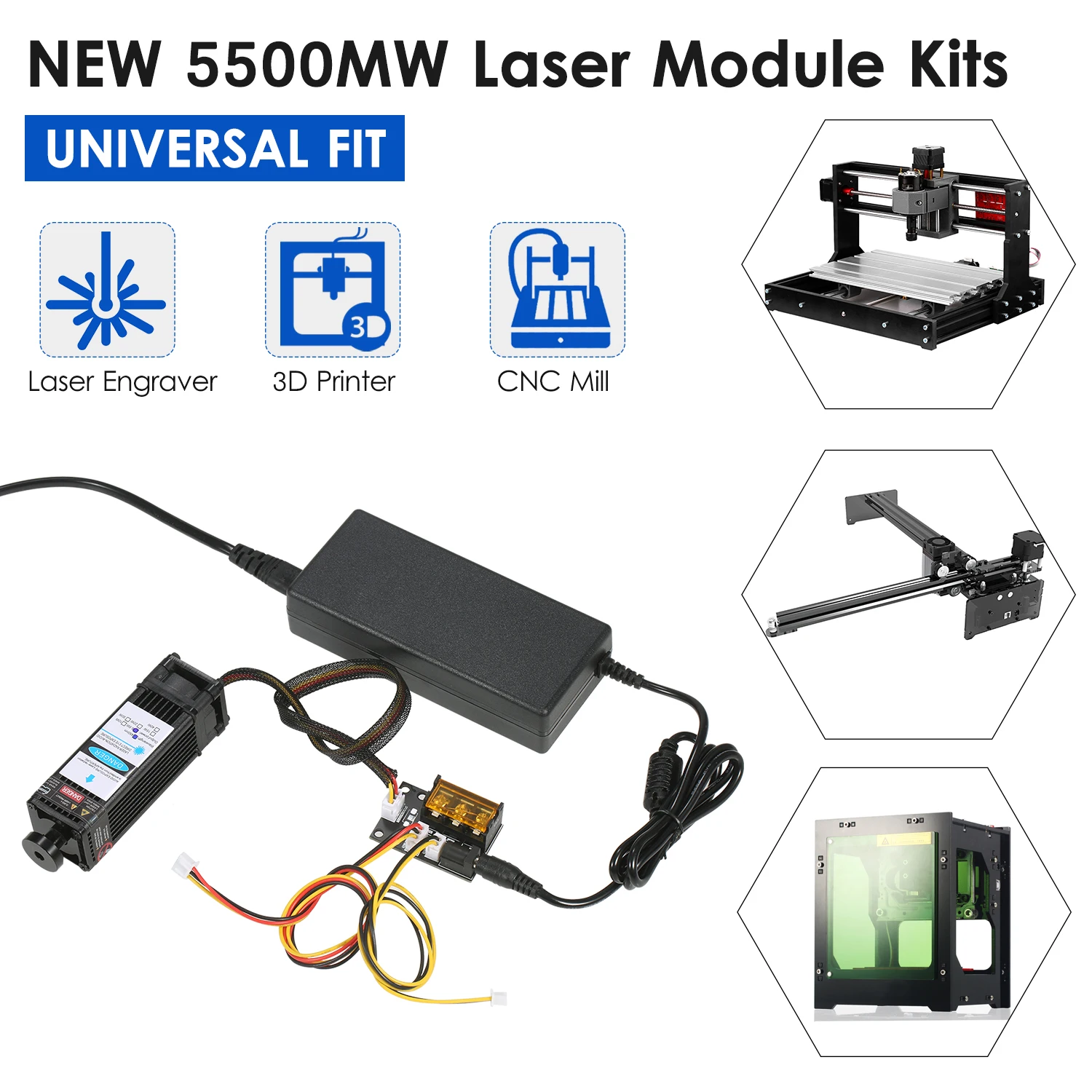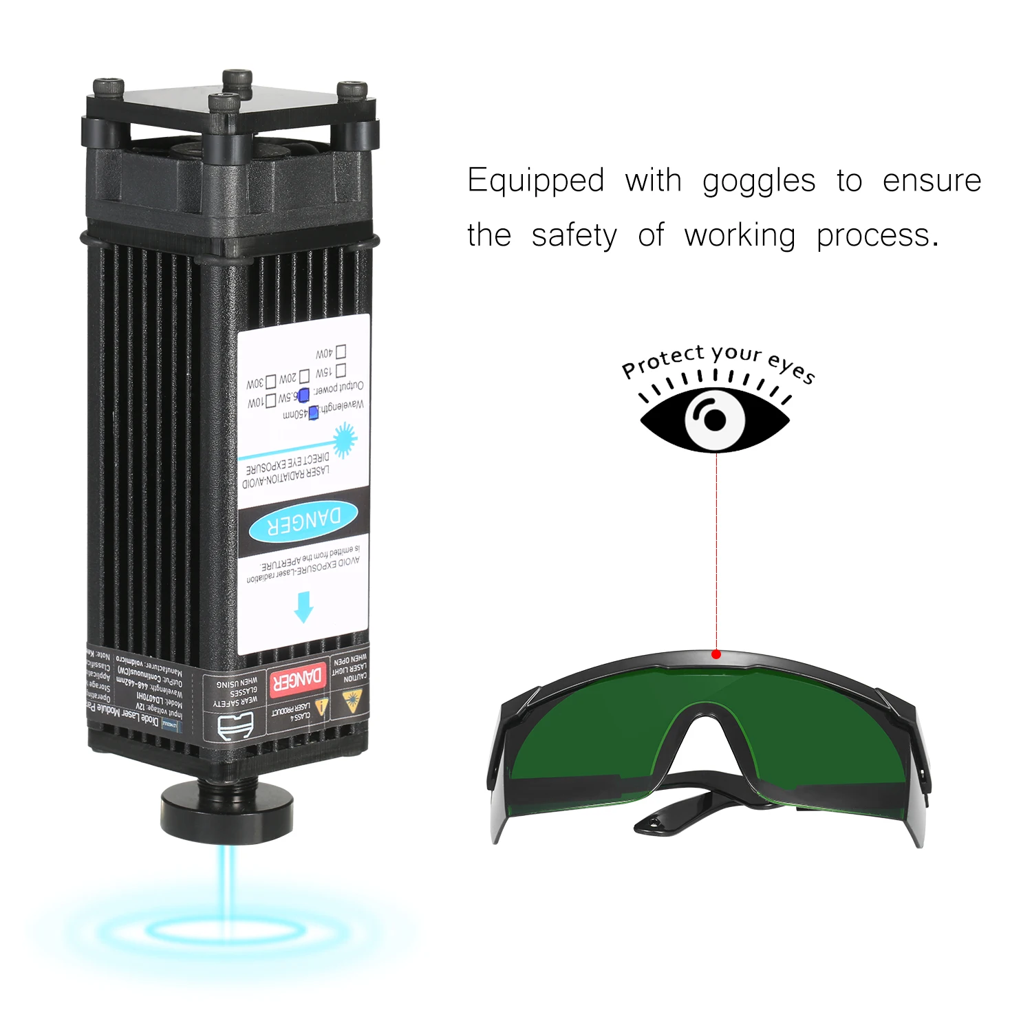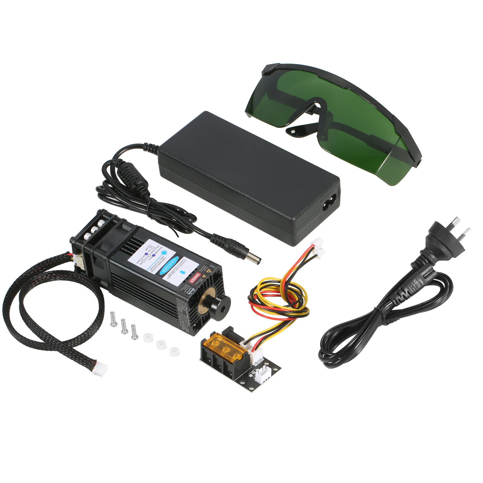 В комплект лазерного модуля «сделай сам» входит плата адаптера для 3 входных методов с кабелем TLL и 3-контактным кабелем, который универсально подходит для всех устройств для лазерной гравировки, 3D-принтера и фрезерного станка с ЧПУ. С длиной волны 450 нм, это эффективный инструмент для лазерной гравировки и лазерной резки. Есть 5 мощных лазерных модулей на выбор, они могут гравировать и разрезать разнообразные материалы. Особенности: Комплект лазерного модуля Universtal-посылка комплект входит лазерный модуль, плата адаптера метода ввода 3, кабель 2 Pin и 3 pin, блок питания и шнур питания. Плата адаптера 3 интерфейса и 2 кабеля предназначены для лазерного гравера, 3D-принтера, Фрезы с ЧПУ. Вы можете свободно использовать наш лазерный модуль в разнообразной раме. Обновление голубого лазерного модуля -- обновление профессионального лазерного модуля с меньшими потерями и высокой точностью, при этом высокая скорость, высокая стабильность и длительный срок службы. Яркий сине-фиолетовый светильник, точное Пятно без бродсветильник, легко определить местоположение при гравировке. Фиксированный фокус-поставляется с дополнительным фокусным кольцом, помогающим выравнивать расстояние гравировки между лазерным модулем и резьбовыми предметами. Легко собирается безопасное использование-маленький и компактный, удобный и простой в установке. Поставляются с защитными очками, обеспечивают безопасность рабочего процесса. 40 Вт резьбовой материал-он может гравировать 201/304 нержавеющей стали, титановой стали и анодированного алюминия, камня, МДФ, бальзы, дерева, ткани, пластика, печатных плат, бумаги, бамбука, рога, кожи, губчатая бумага и т. д. Не гравируется: медь ra w Материал s, алюминий ra w Материал s. 40 Вт режущие материалы-резка фанеры, резка черной акриловой доски, кожи, бумаги и т. д. Спецификация: Вилка: ЕС/США/Великобритания/Австралия (опционально) Мощность лазера: 5500 МВт/10 Вт/20 Вт/30 Вт/40 Вт (опционально) Материал: алюминиевый сплав + пластик Цвет светильник: сине-фиолетовый Входное напряжение: 12 В Длина волны: 448-462nm Форма затычка: кнопка, регулируемый фокус (30 Вт не может регулировать фокусировку) Источник питания: Вход: AC 100-240V 50-60Hz Выход: 12 В 6А Комплектация: 1 * лазерный модуль 1 * комплект аксессуаров для установки 1 * вспомогательная фокусировка 1 * конверсионная плата 1*2 контактный шнур 1*3 контактный шнур 1 * очки 1 * блок питания 1 * шнур питания