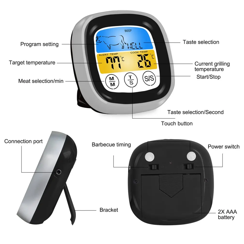 Термометр для приготовления пищи, барбекю, с сенсорным светодиодный...