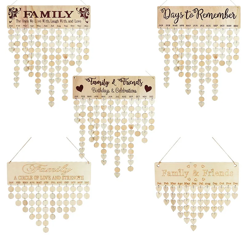 Деревянная доска с календарем на день рождения, 5 видов, подвеска сделай сам для друзей и семьи, знак с напоминанием, настенное украшение для дома, вечеринки, доска-планировщик, подарок