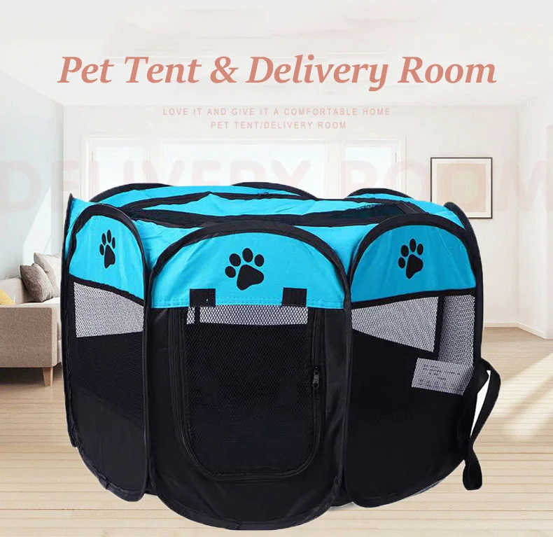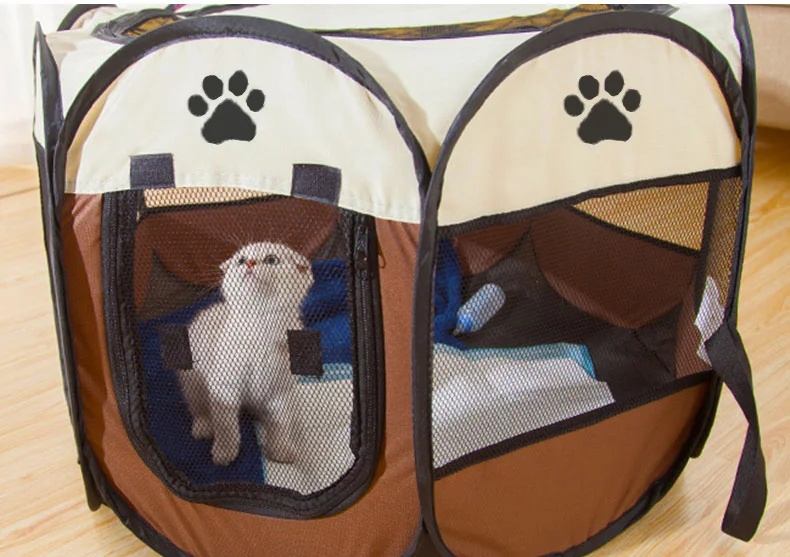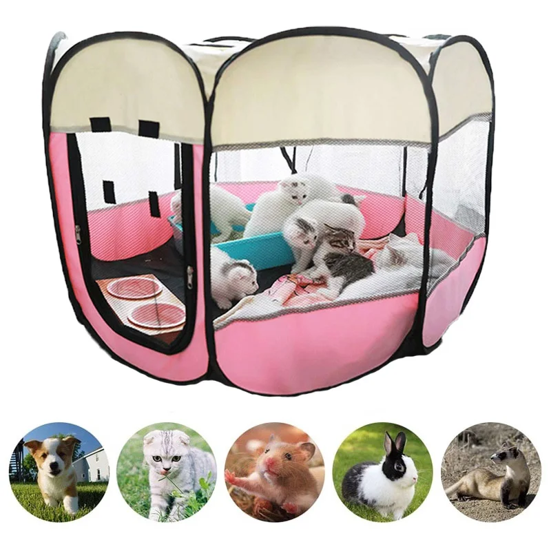 Переносная клетка для домашних животных, складной домик для собаки, клетка, палатка для кошек, манеж, питомник для щенков, восьмиугольный забор простой в эксплуатации Большой Домик для собак