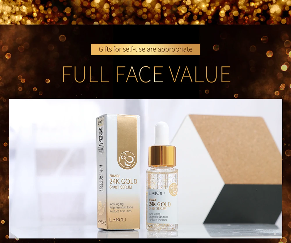 LAIKOU с покрытыем цвета чистого 24 каратного золота лицо улитки Сыворотки анти-старения увлажнение для лица с гиалуроновой кислотой, Essence Pure отбеливающий увлажняющий уход за кожей 17 мл