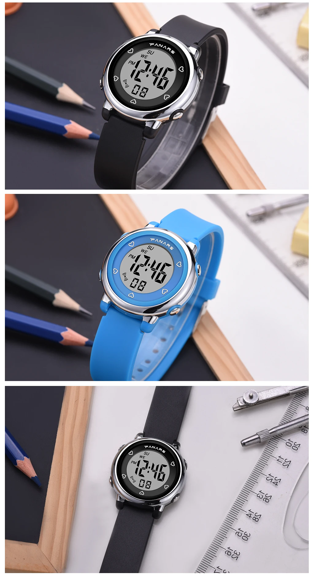 Часы светодиодные цифровые для мальчиков и девочек, водонепроницаем...