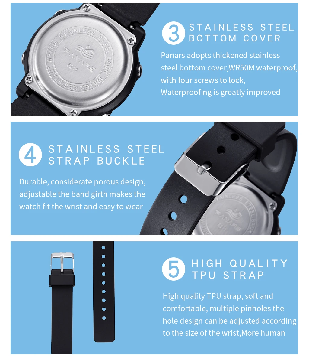 Детские часы, водонепроницаемые до 50 м, спортивные часы для детей,...