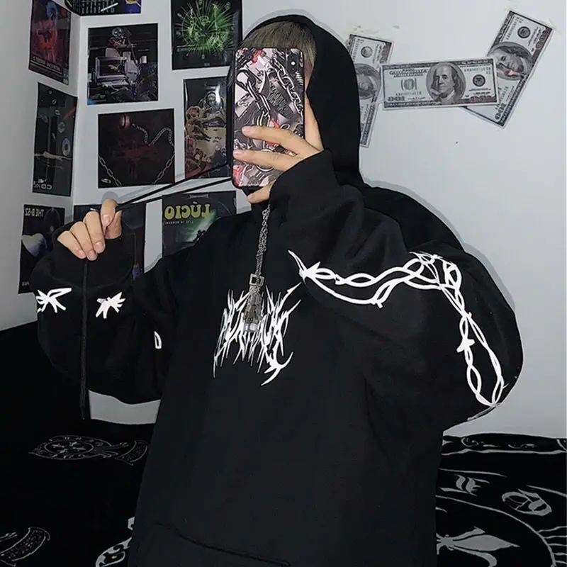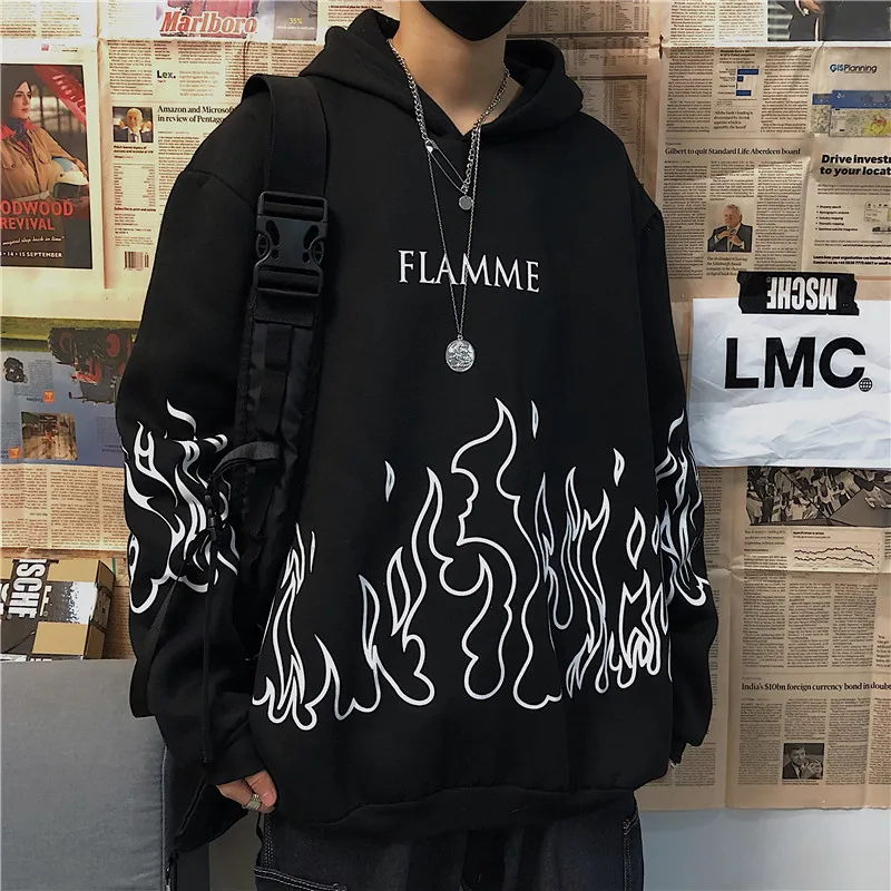 Толстовка с капюшоном и принтом пламени в стиле K-POP