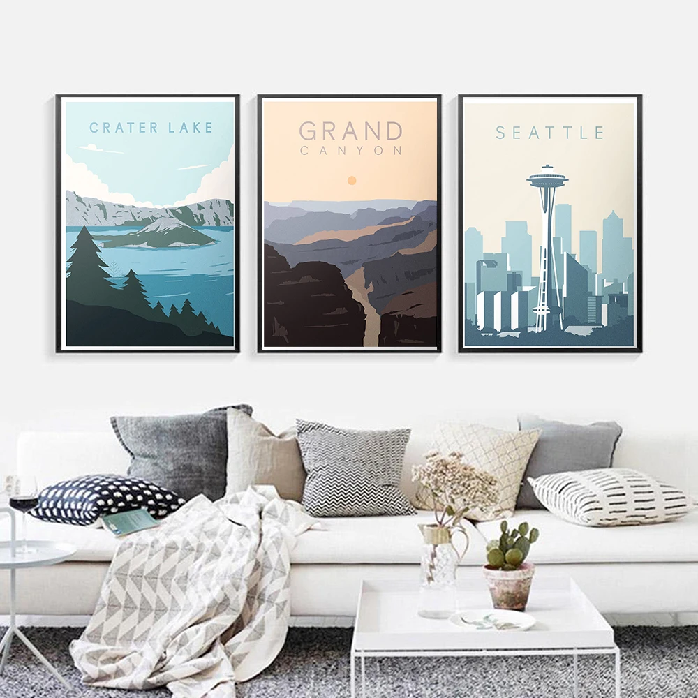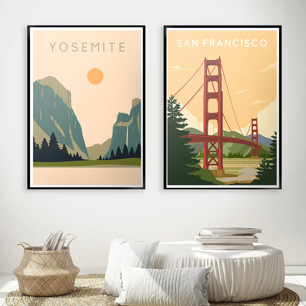 Hd Печать винтажная живопись Нью-Йорк Yosemite Техас Чикаго Ретро постеры путешествия города пейзаж плакаты настенные художественные картины icon star icon star icon star icon star icon star