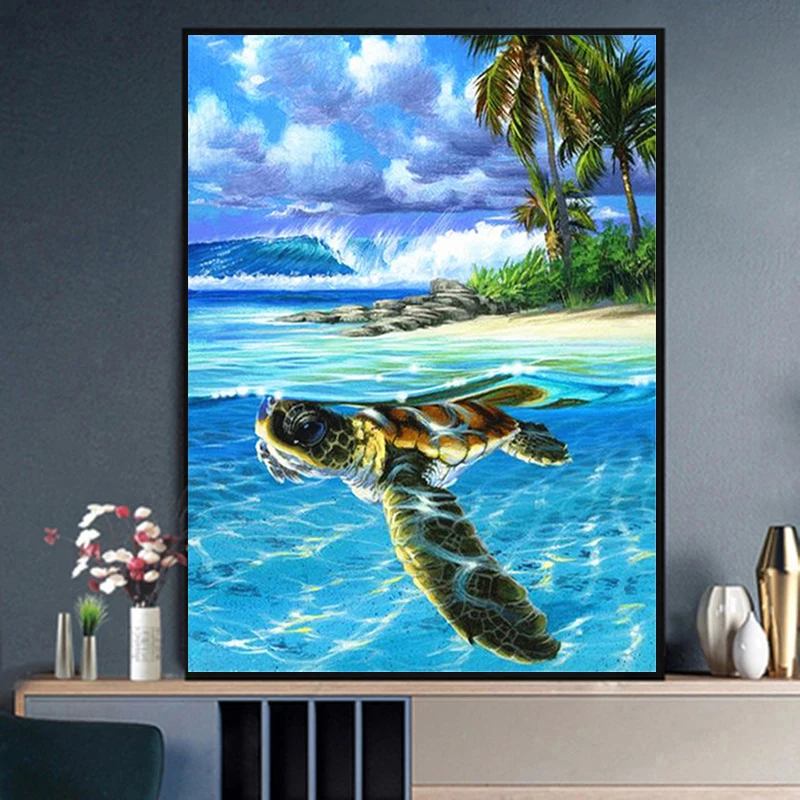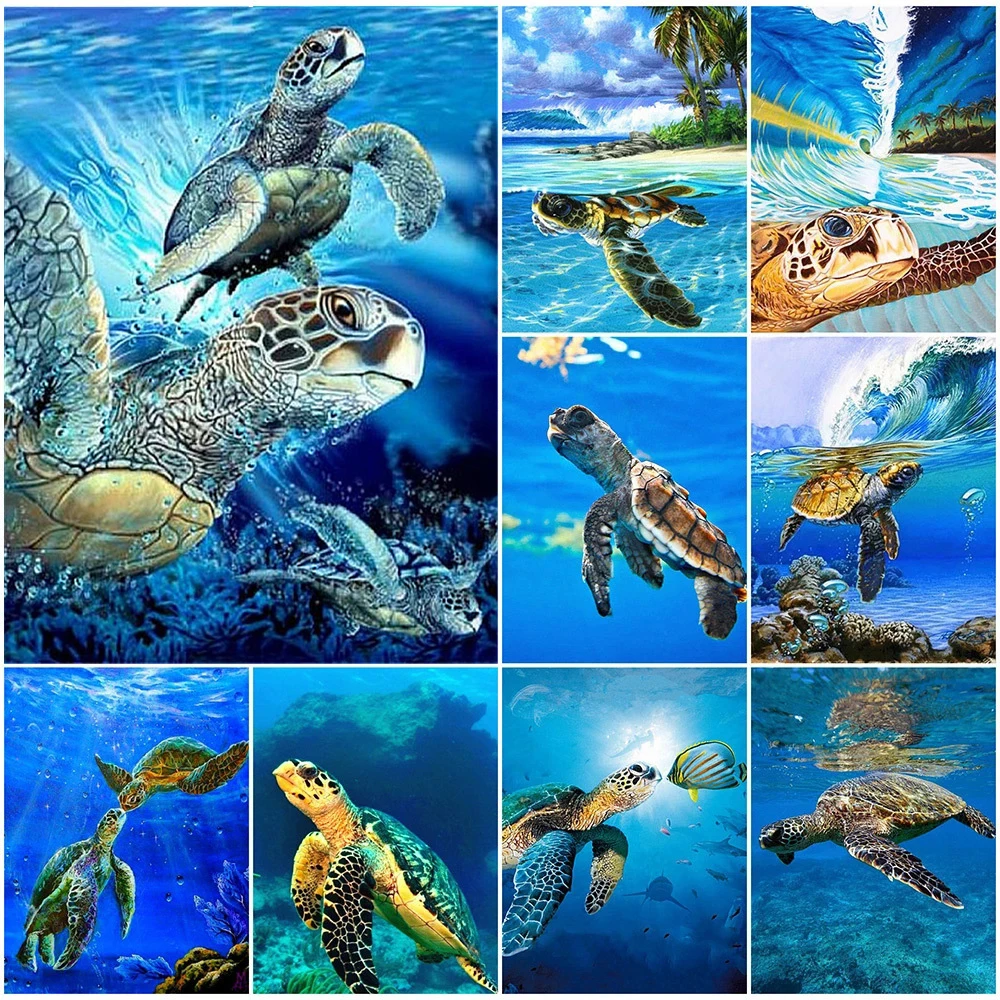Алмазная картина 5D "сделай сам", морская черепаха, бриллиантовая мозаичная фигурка животного картина Стразы, алмазная вышивка крестиком, домашний декор