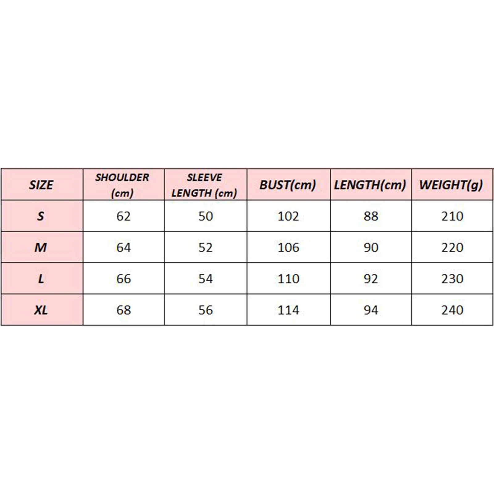 S Длина: 88 Бюст: 102 Плечо: 62 Длина рукава: 50