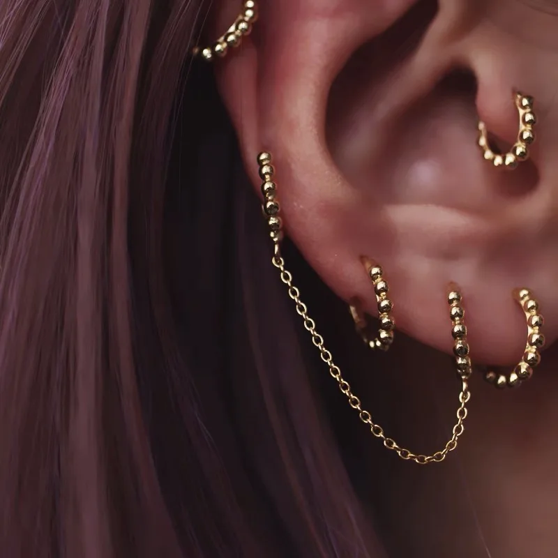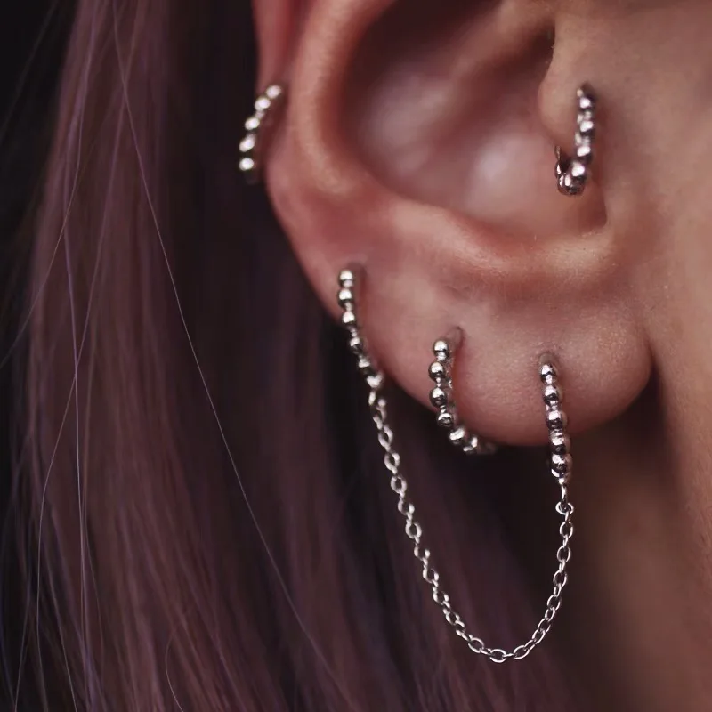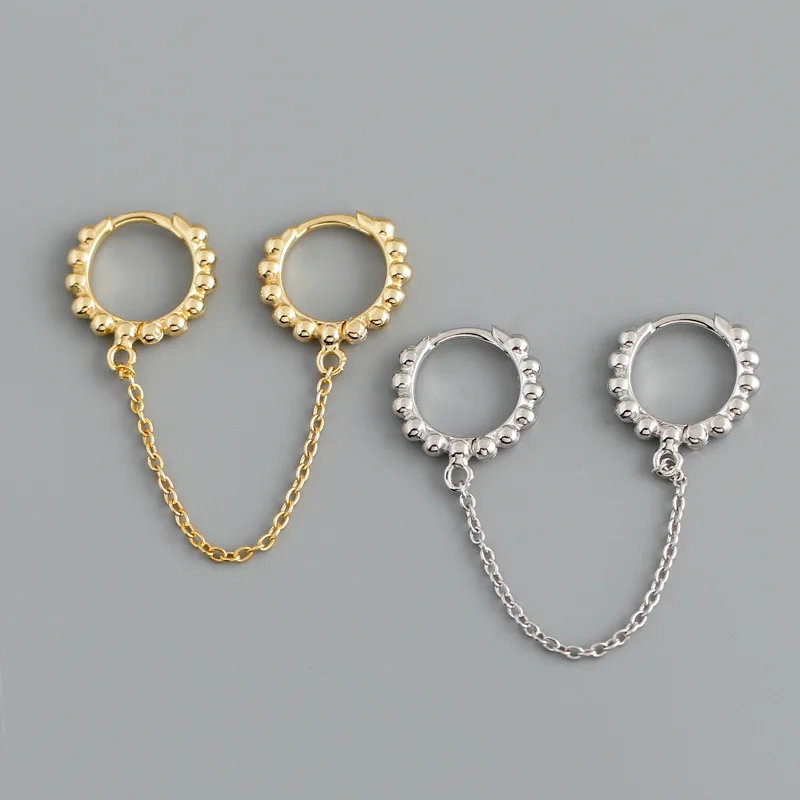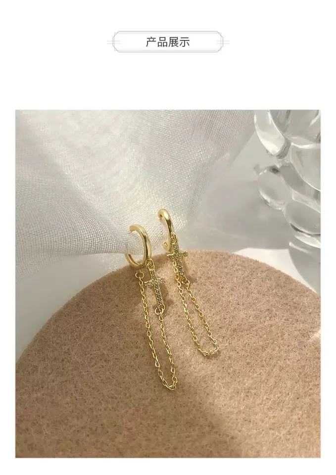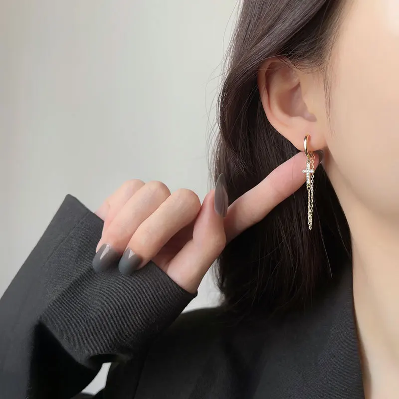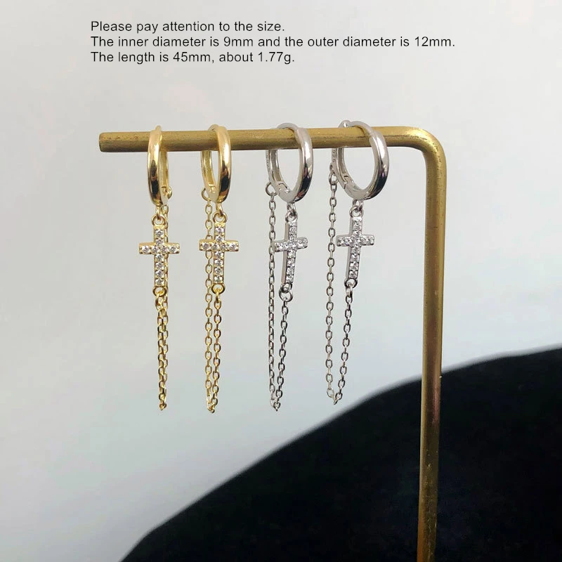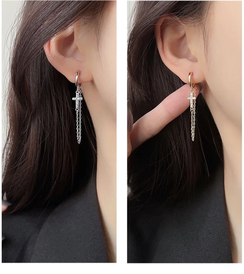 925 пробы серебряные серьги 234 пирсинг в Сиамском стиле уши цепи серьги крест длинные серьги-кисточки личность Для женщин Девушка уха Jewelr