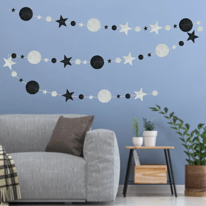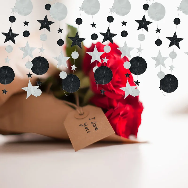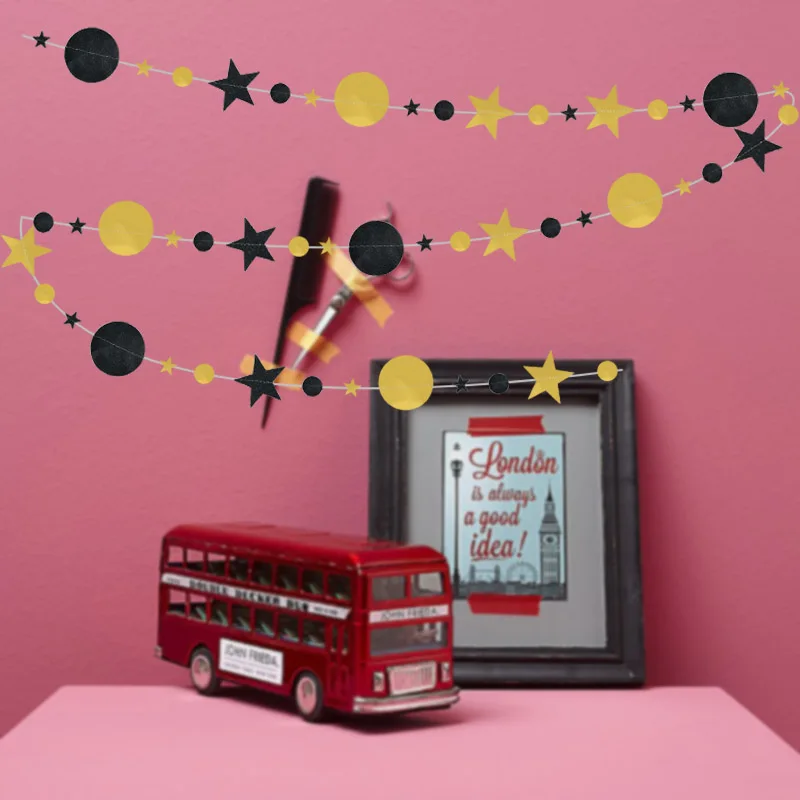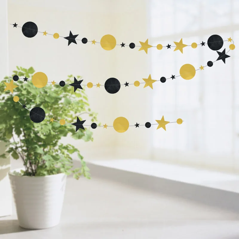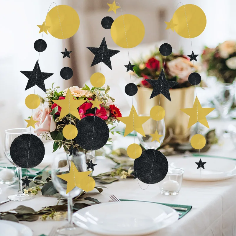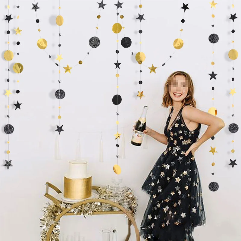 Декоративная гирлянда для свадьбы, дня рождения, 4 м, черная, блестящая золотая звезда, плакат в горошек
