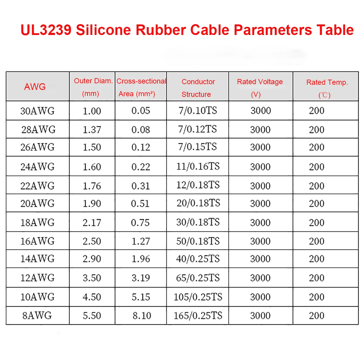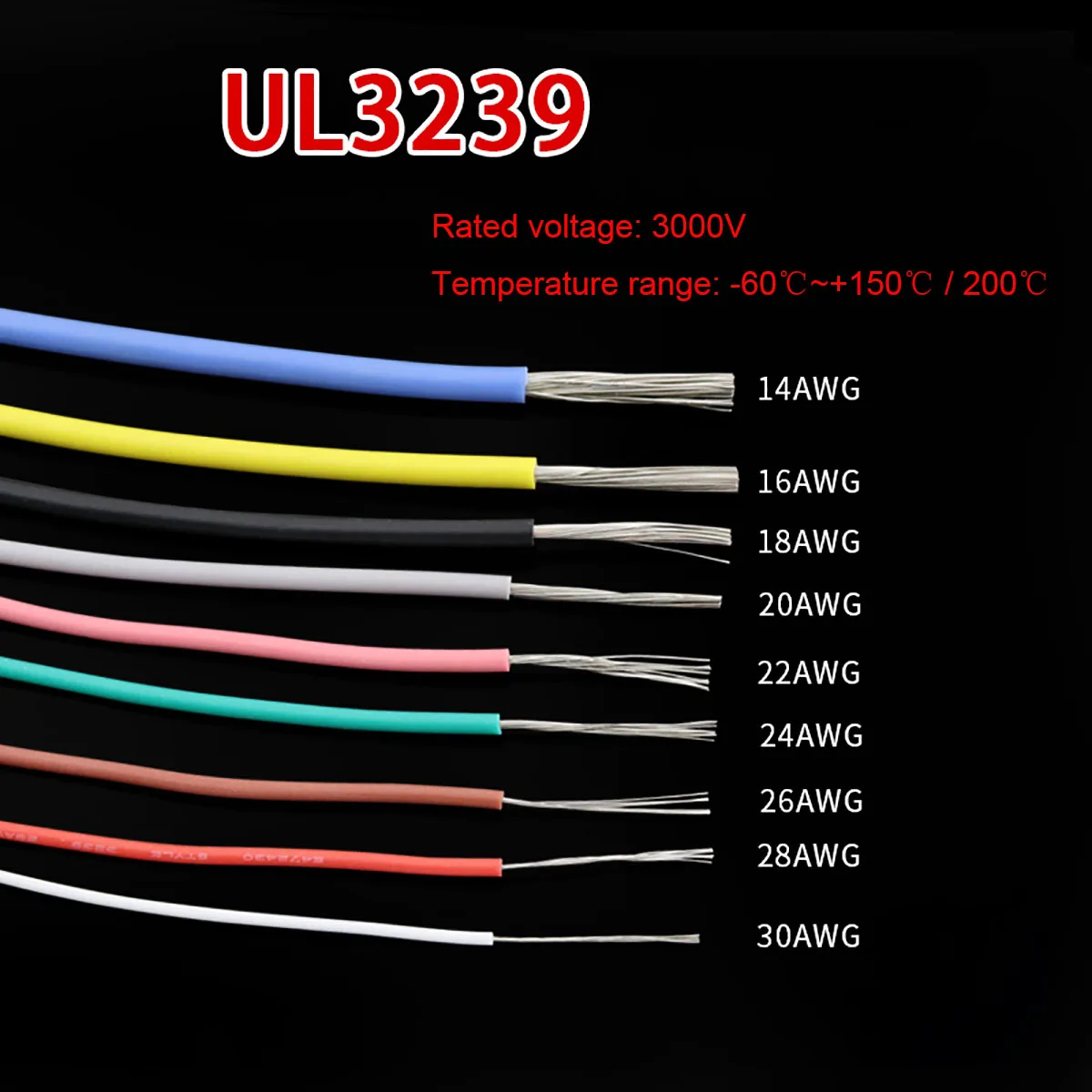 UL3239 электронные провода в силиконовой оплетке 141618202224262830AWG луженый медный гибкий кабель Высокое Температура сопротивление 200