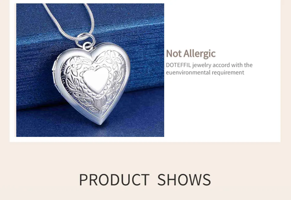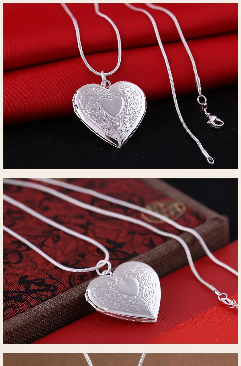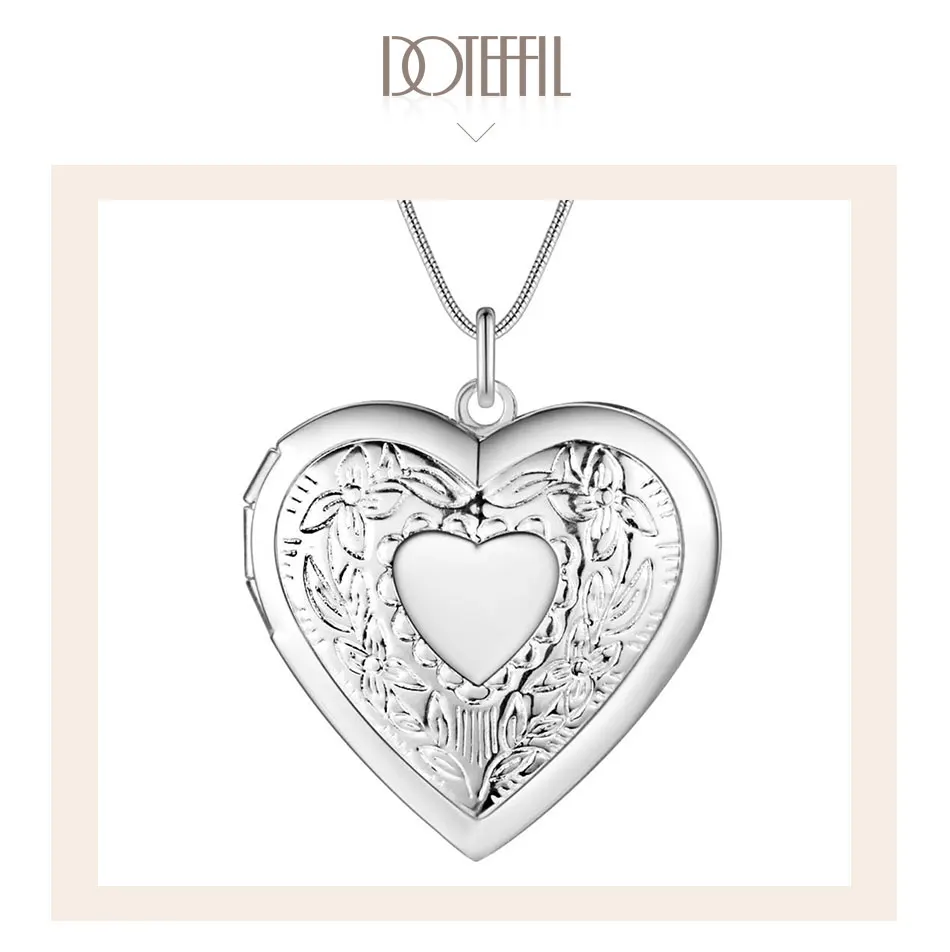 DOTEFFIL 925 серебро классический узор змеиная цепочка в форме сердца фоторамка ожерелье для женщин модные свадебные ювелирные изделия