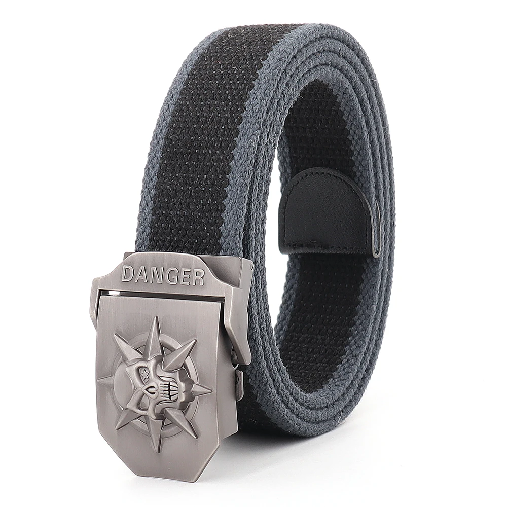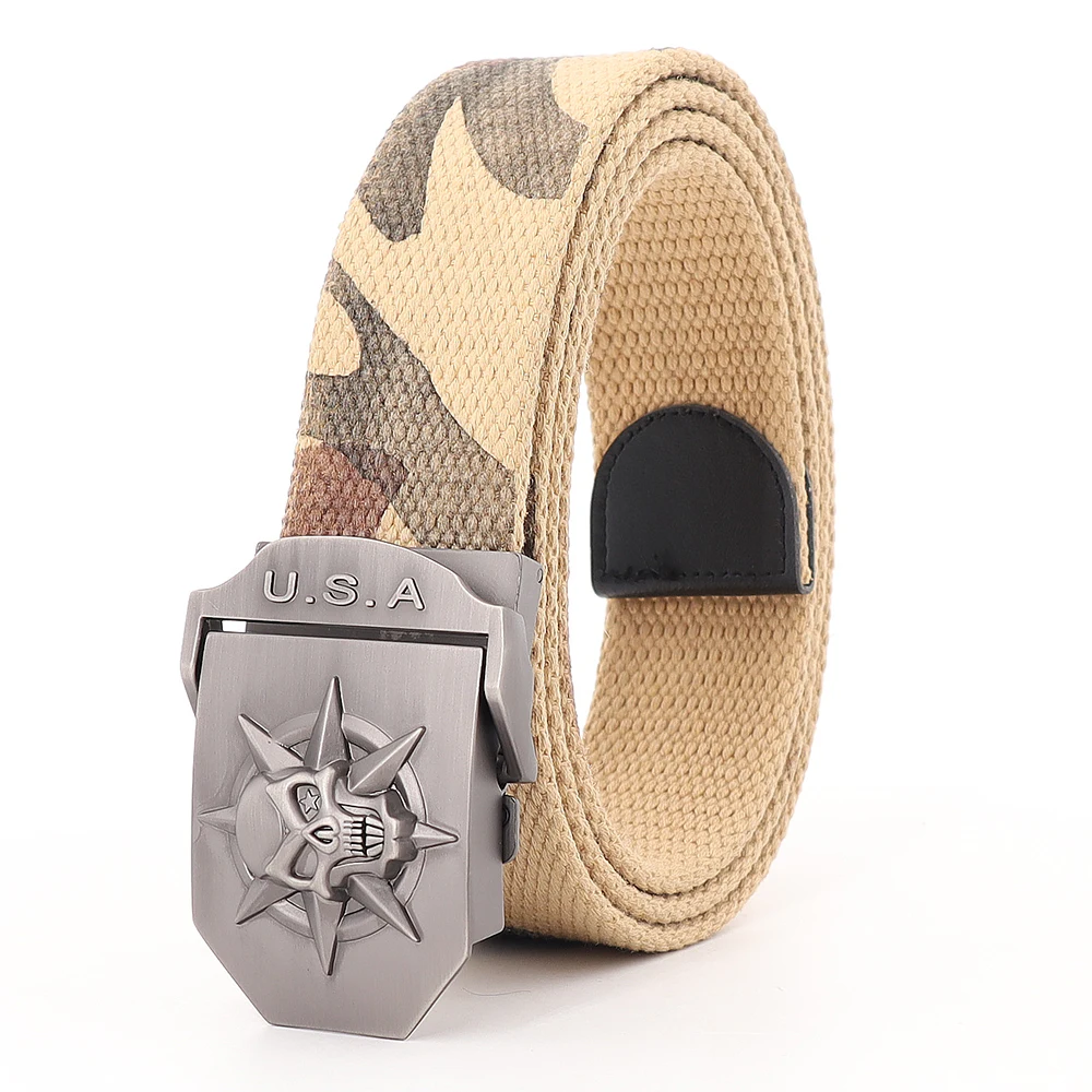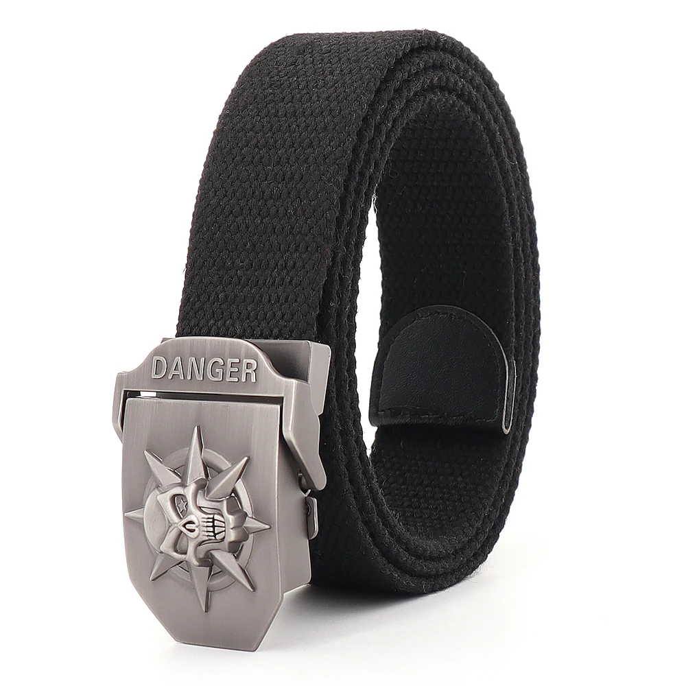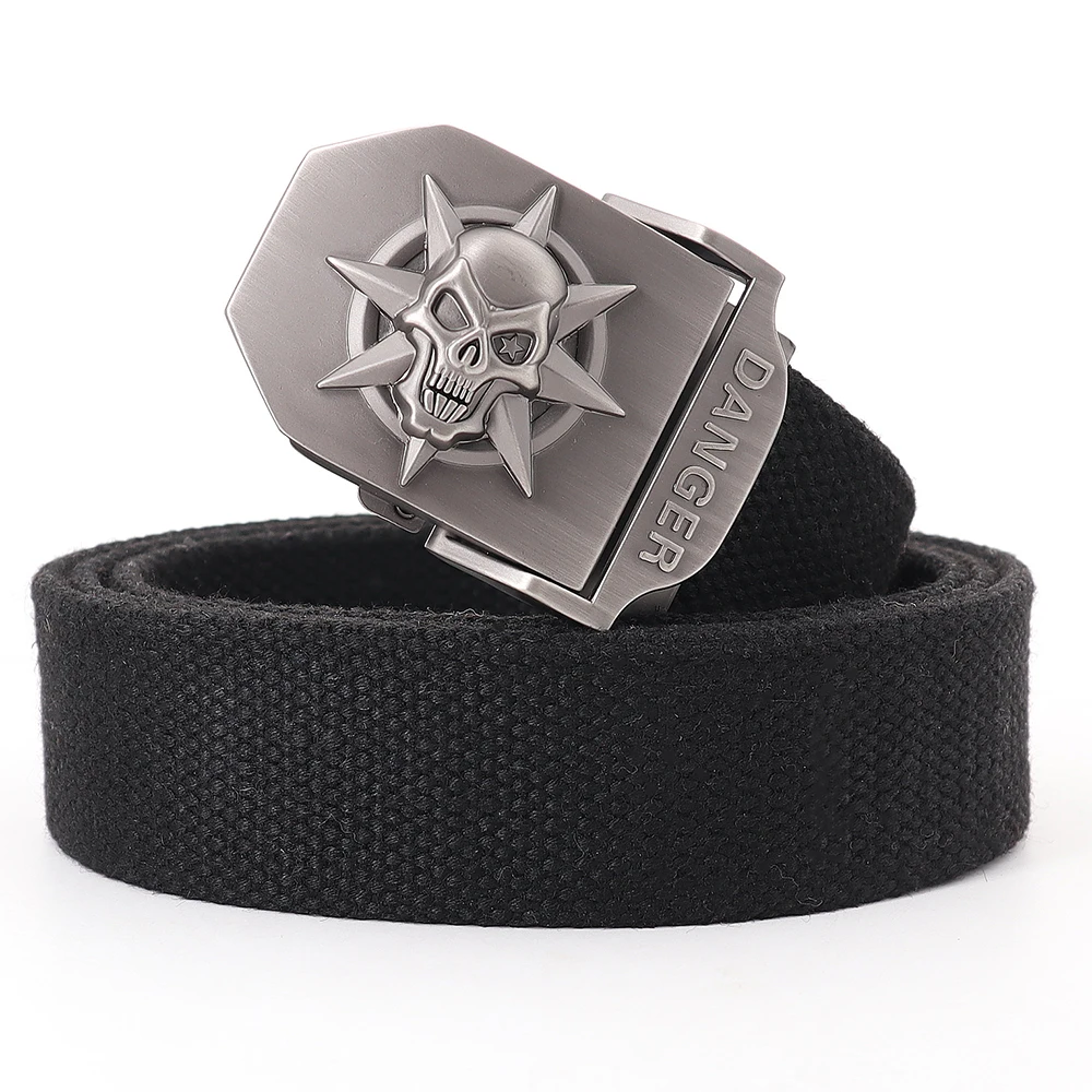Для мужчин и женщин класса люкс череп металлический пояс с пряжкой для джинсов Тактический тренировочный пояс высокого качества холст ремень Женская модная повседневная обувь; Принт череп ремень