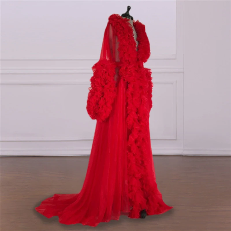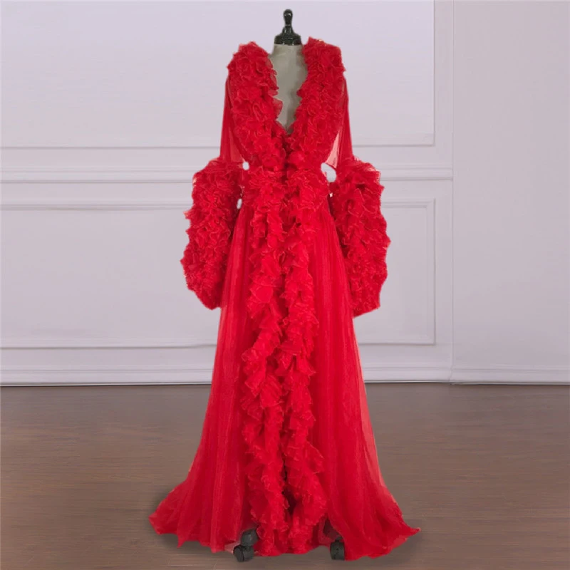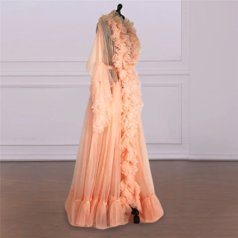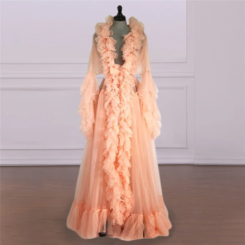 2021 Пижама с оборками для невесты, халаты с поясом, новейшая Соблазнительная пижама из тюля в несколько рядов с V-образным вырезом и длинными рукавами, женская пижама на заказ