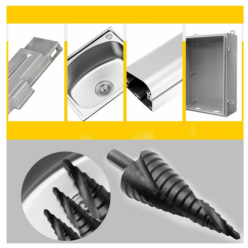 Набор ступенчатых сверл, комплект из 3 черных конусных насадок с уменьшенным хвостовиком, из быстрорежущей стали с титановым покрытием, 4-122032 мм