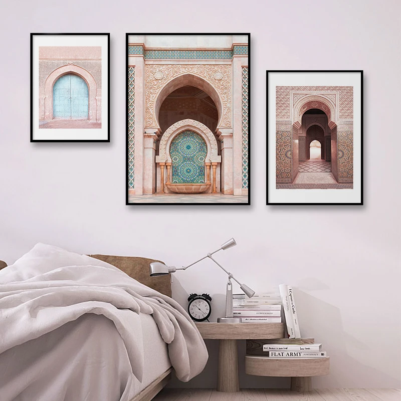 Марокканская Арка ворота холст живопись Исламская архитектура настенный постер Хасан II мечеть печать Арабская мусульманская декоративная картина
