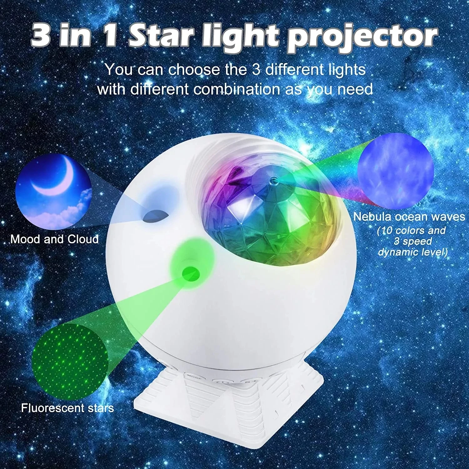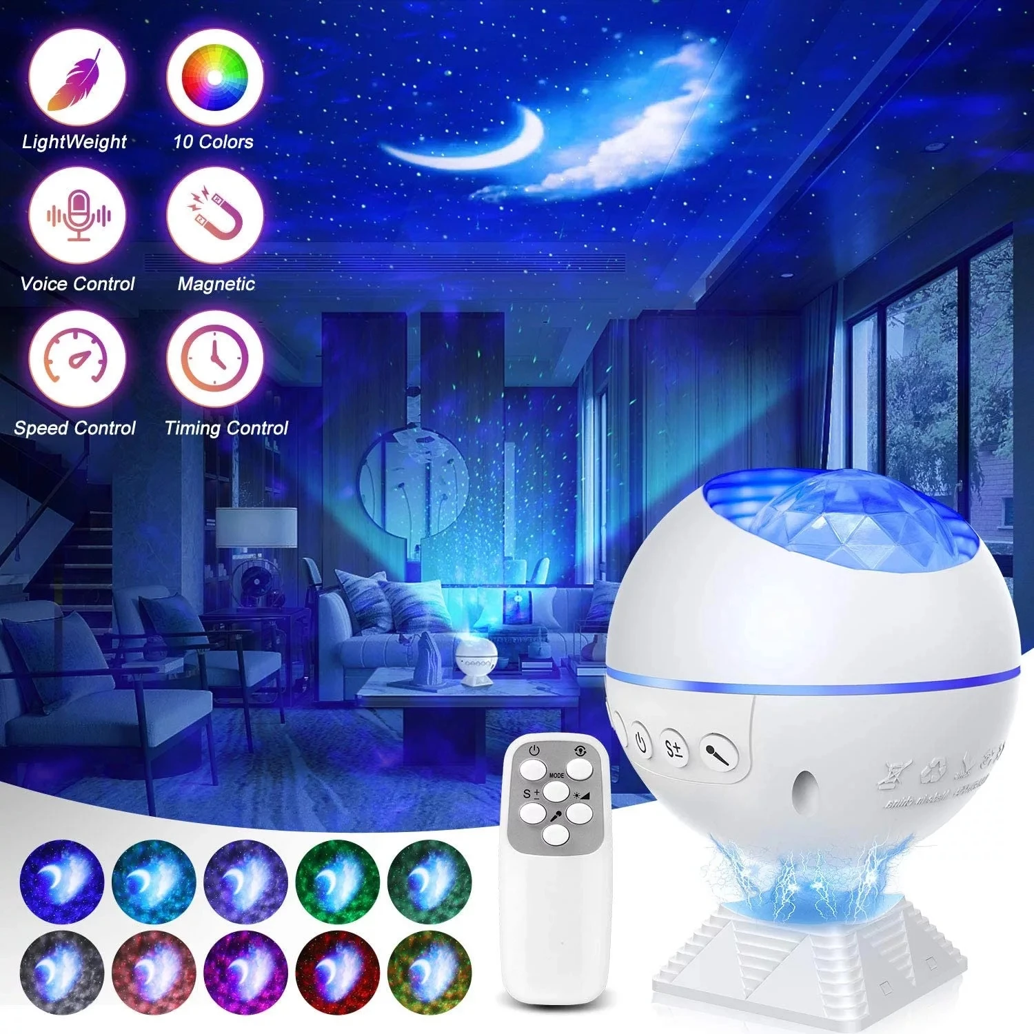 Галактический проектор 3 в 1, проектор океанских волн, Ночной светильник, Звездный проектор с дистанционным голосовым управлением, туманность, облако, подарок для детей и взрослых