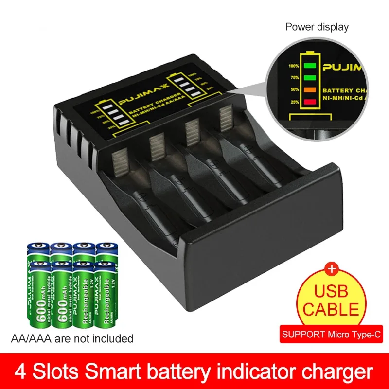 Набор перезаряжаемых батарей AA и зарядных устройств PUJIMAX, Интел...