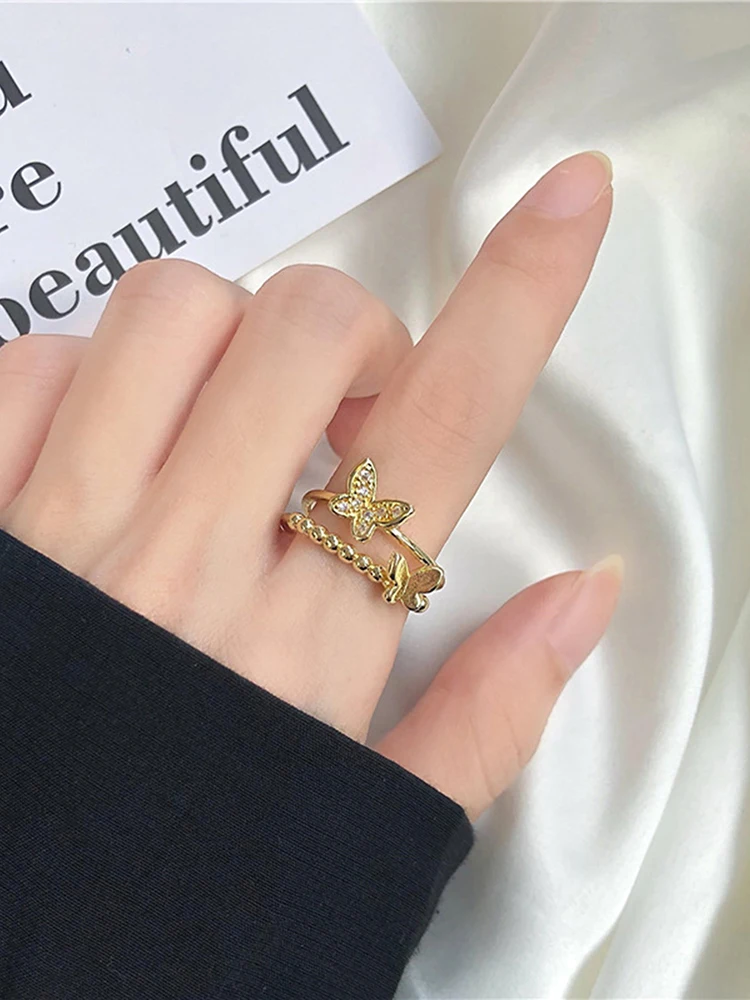 Кольцо женское, открытое, с бабочкой, роскошное, 2021