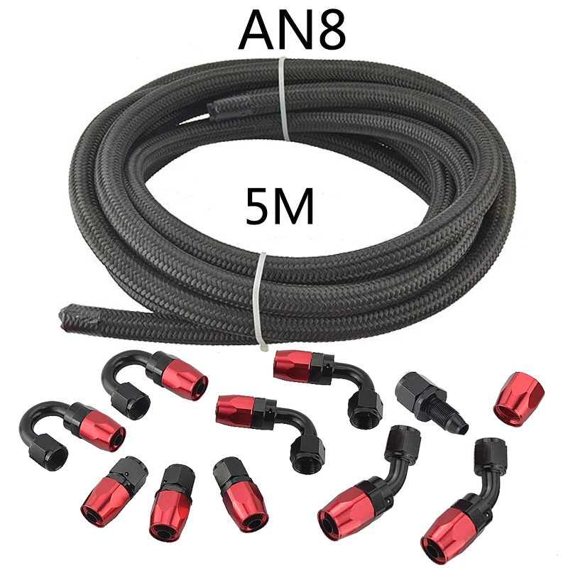 5 м AN8 черный Плетеный Нейлоновый Шланг из нержавеющей стали, топливная труба, система охлаждения масла, комплект адаптеров AN8 04590180 градусов, штуцер для шланга