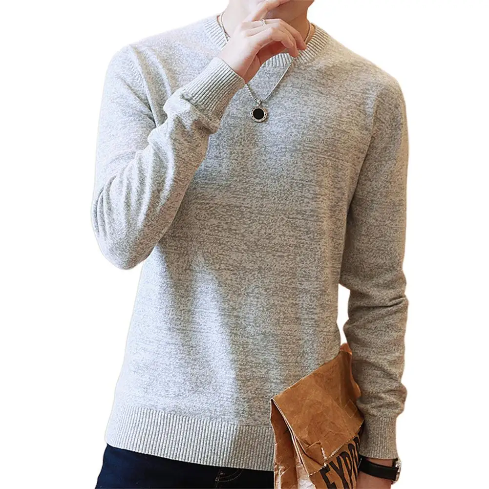 Размера плюс мужской повседневный однотонный тонкий трикотажный свитер с длинным рукавом