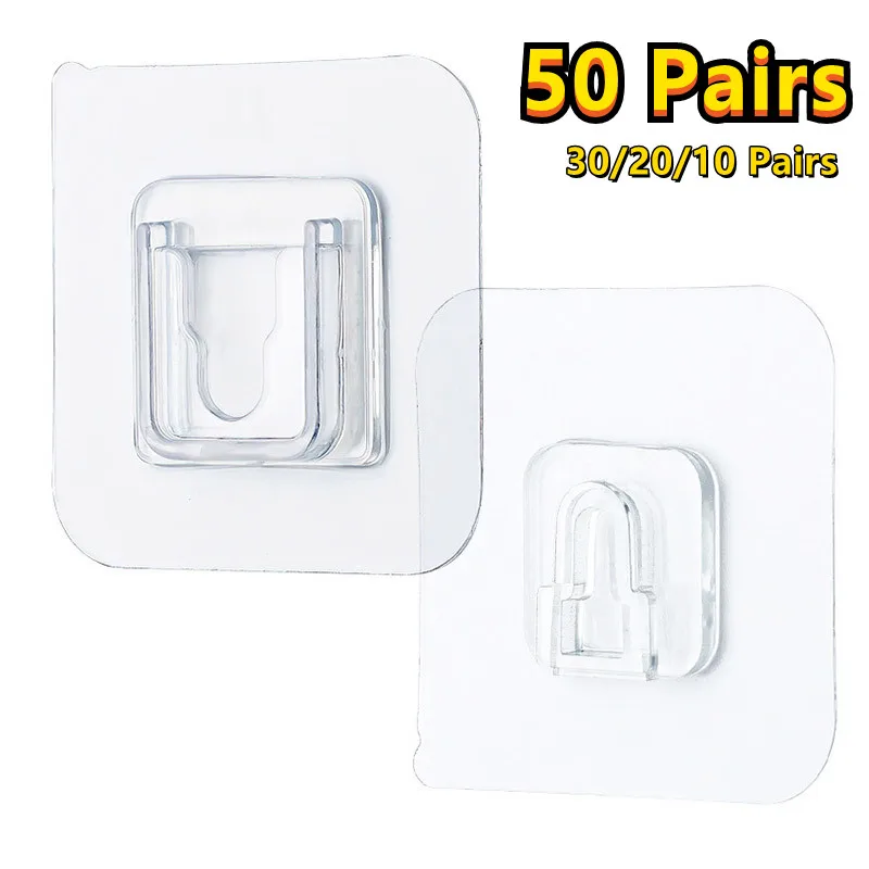 50 пар крючков, двусторонние настенные крючки на клейкой основе, многоразовые крючки для туалетной щетки, Нескользящие крючки для дома и кухни